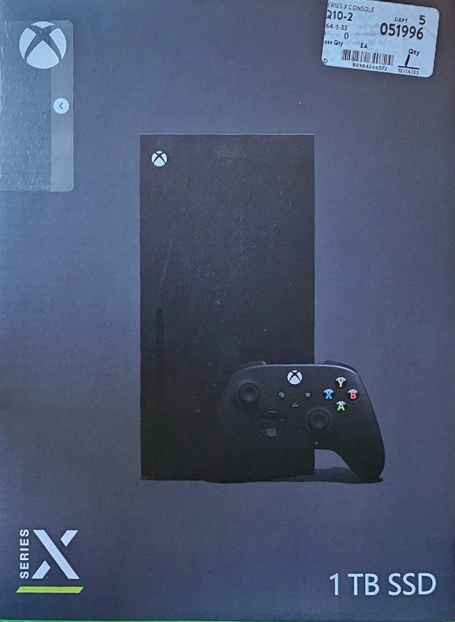 Black console with one wireless controller. Features 4K gaming at up to 120 FPS. Includes a 1TB solid state drive. Plays games across four generations of Xbox consoles. Features high dynamic range, variable refresh rate and a 4K Blu-ray player.