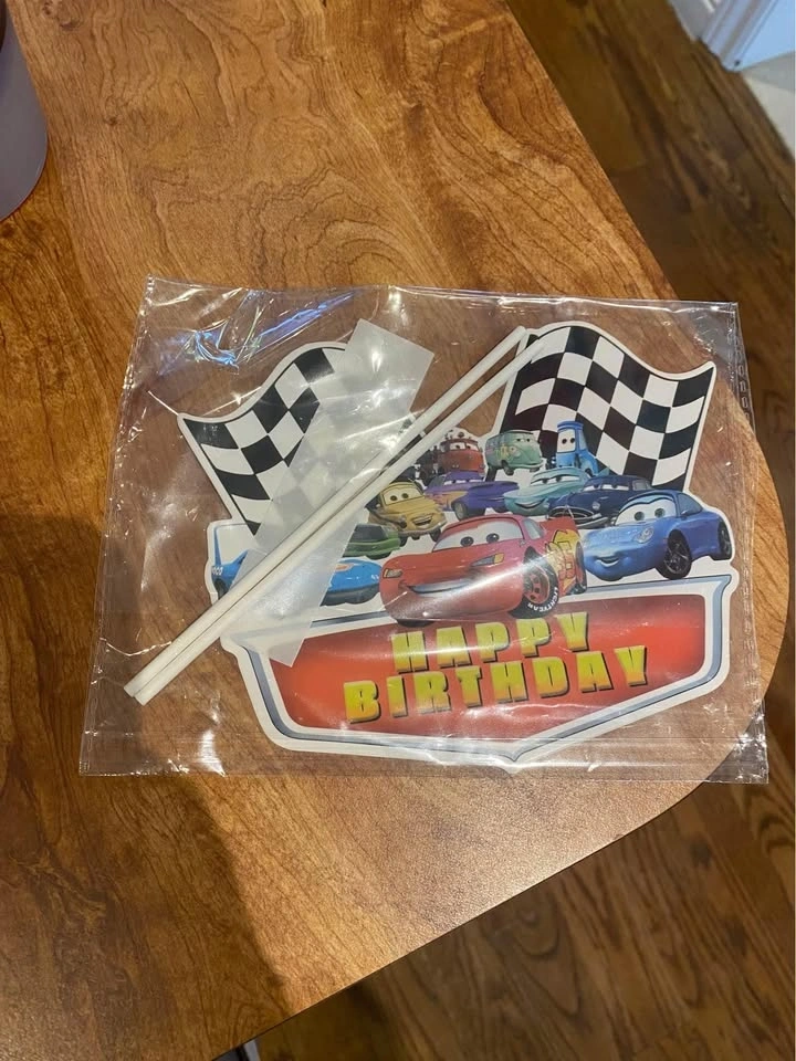 Includes: 1 birthday banner, 1 candle, 1 unopened pack of napkins, 4 Cars cups, 1 unused birthday cake topper, Pin the eyes on Lightning McQueen game, hanging decorations, and food tags. Feel free to message if you have any questions!