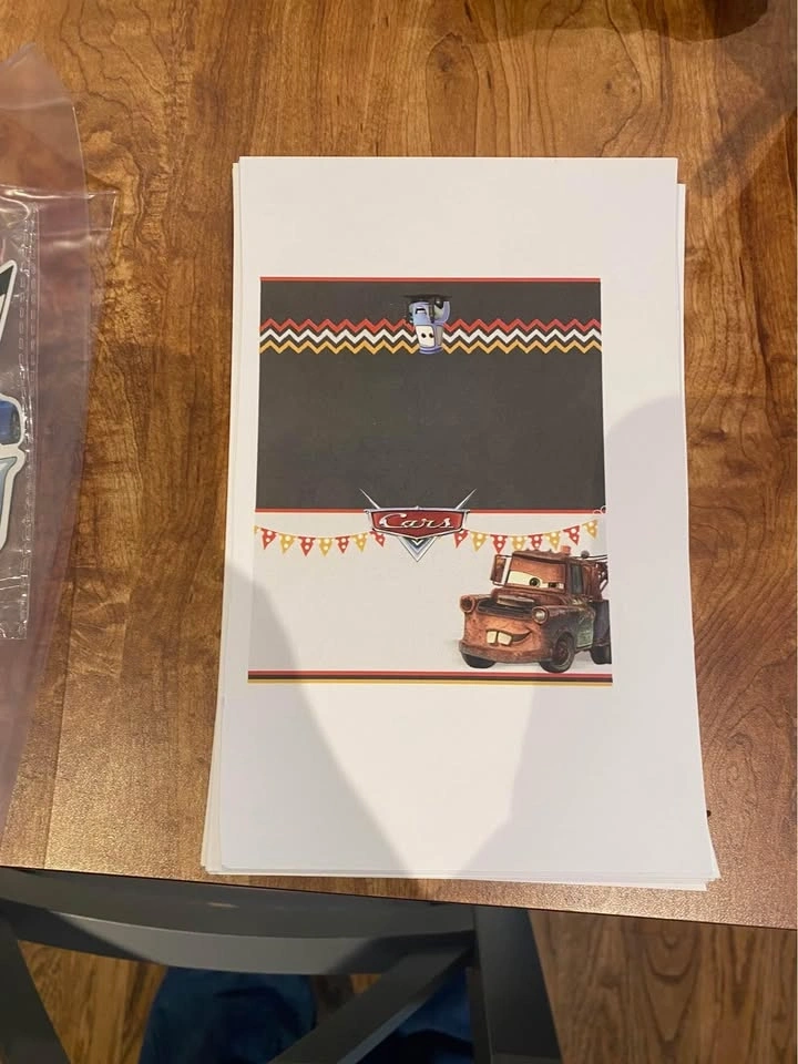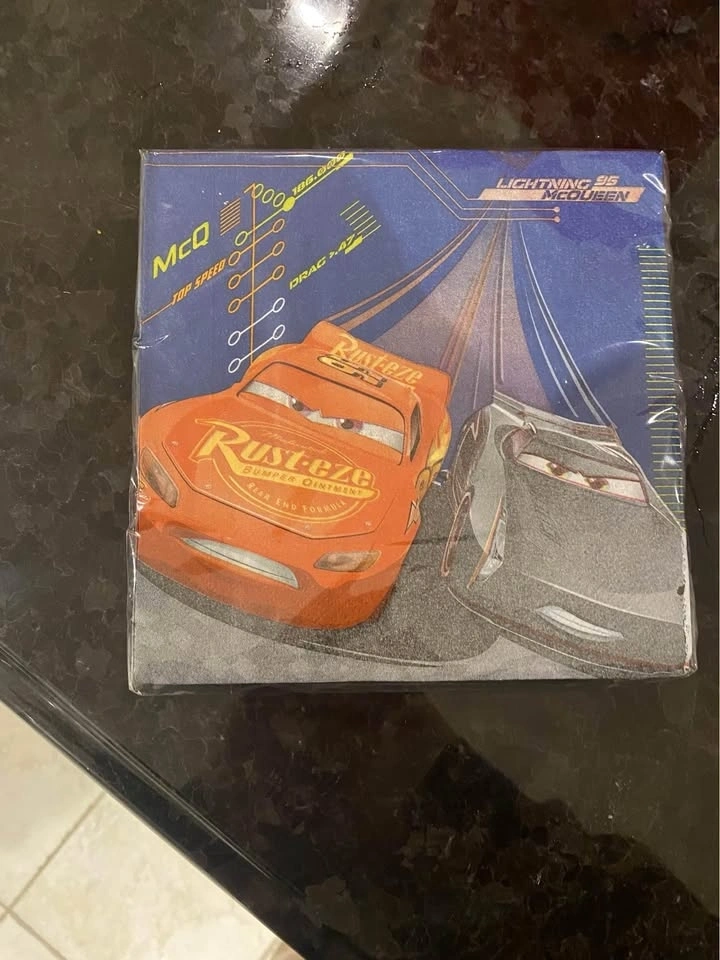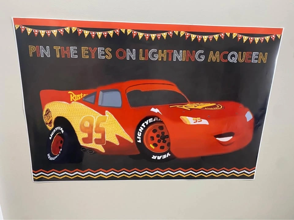 Includes: 1 birthday banner, 1 candle, 1 unopened pack of napkins, 4 Cars cups, 1 unused birthday cake topper, Pin the eyes on Lightning McQueen game, hanging decorations, and food tags. Feel free to message if you have any questions!