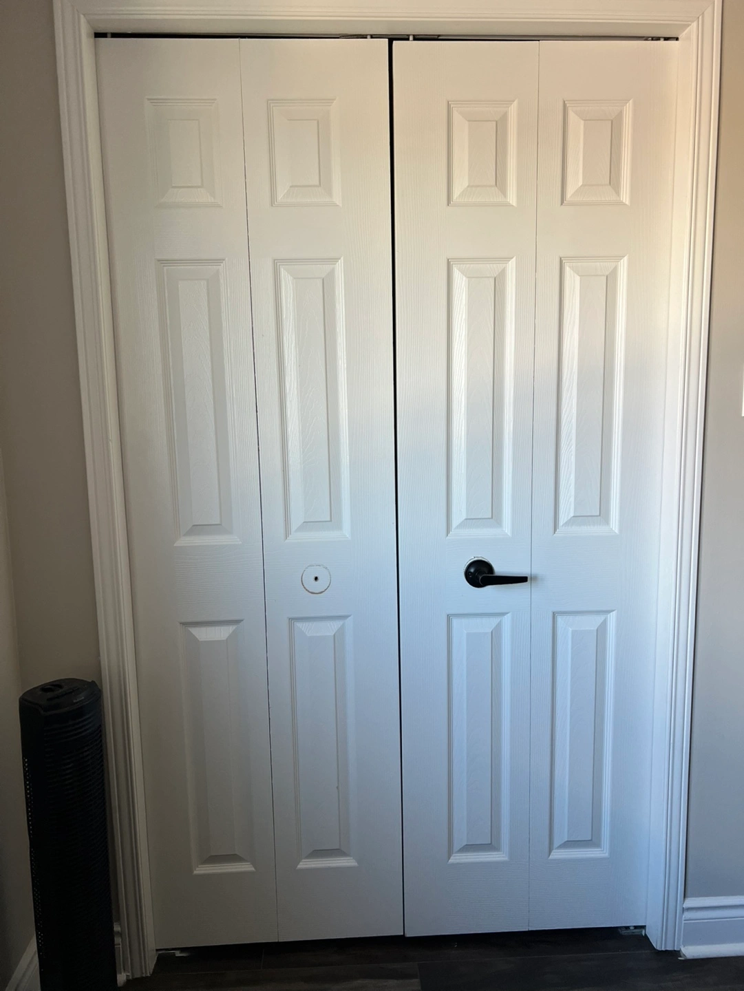 White bi-fold closet doors. Includes hardware.