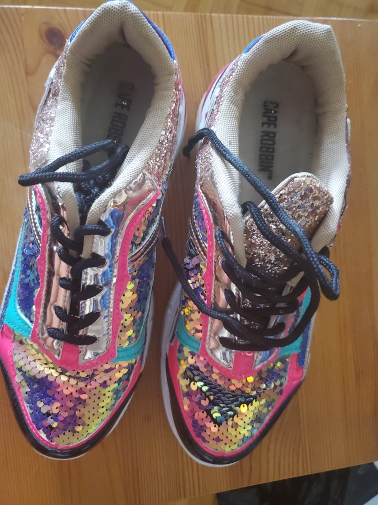 Sparkly sneakers with a chunky sole. multicoloured irridescent sequin detailing. Lace-up closure.