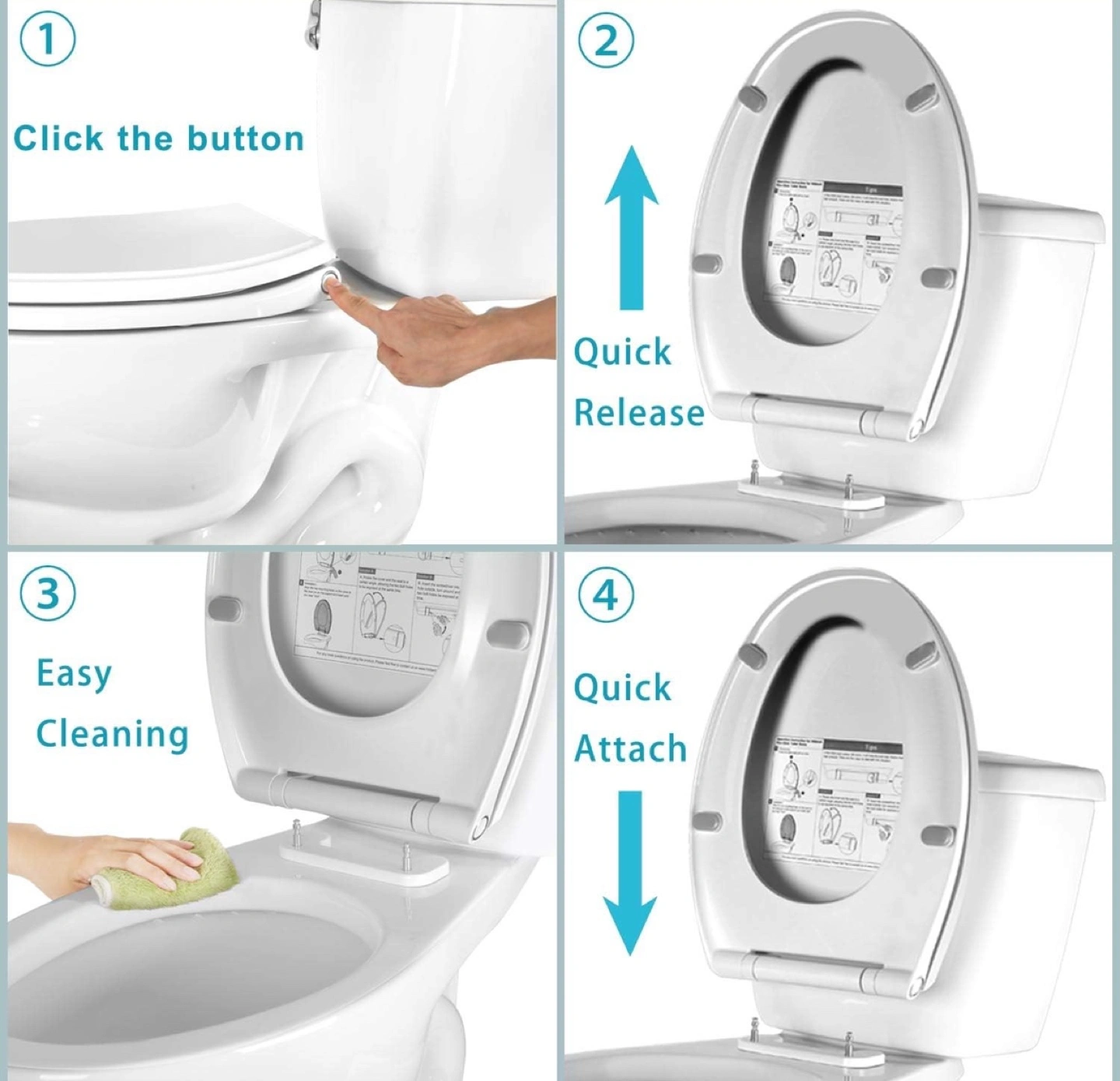 Hibbent Premium One Click Elongated Toilet Seat with Cover(Oval)- Easy Installation and Quick-Release for Easy Cleaning - Stable Hinge Design to prevent shifting - Soft Closed - White Color(Elongated) over $100 on Amazon brand new in the box