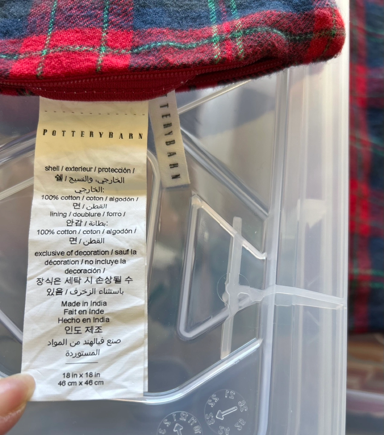 Set of two pillow covers. Red, green and black plaid with a gold and black sequin deer applique. Excellent condition, no rips or tears.