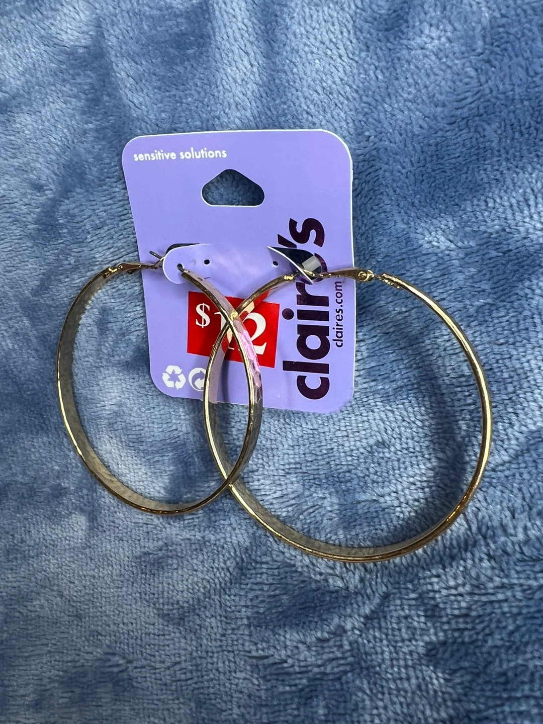 Claires Gold hoop earrings. Small, about 1 inch in diameter.