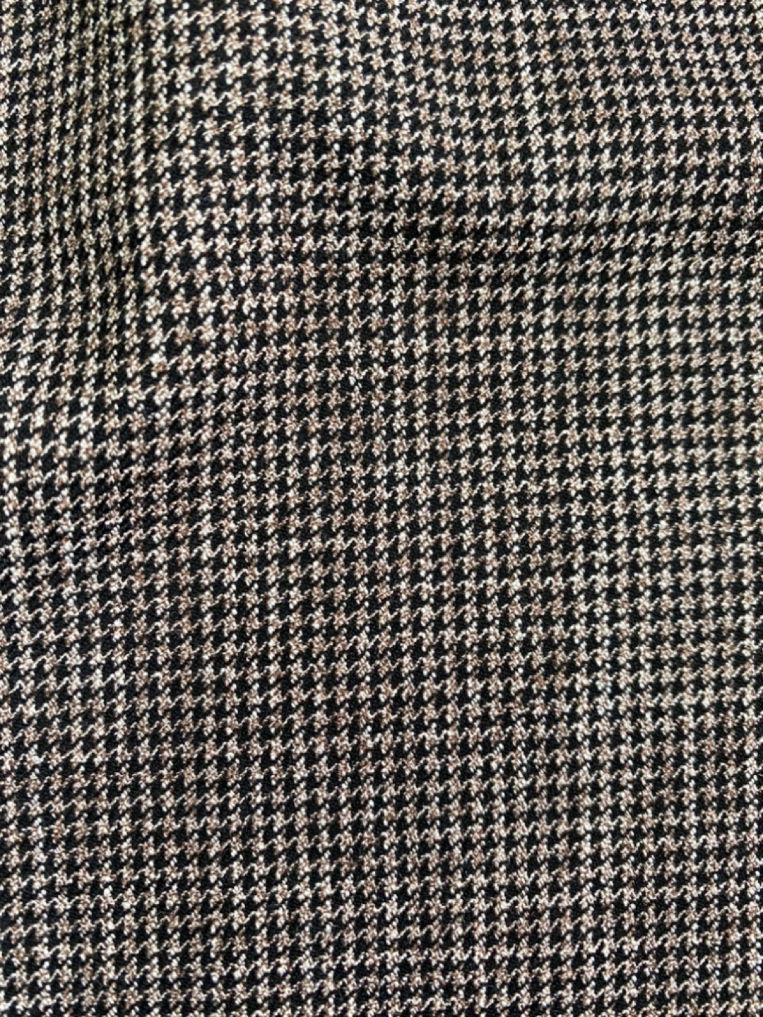 Brown and black plaid skirt with a zipper closure at the back. It has two pockets on the front (non functional) and a stretch lining.