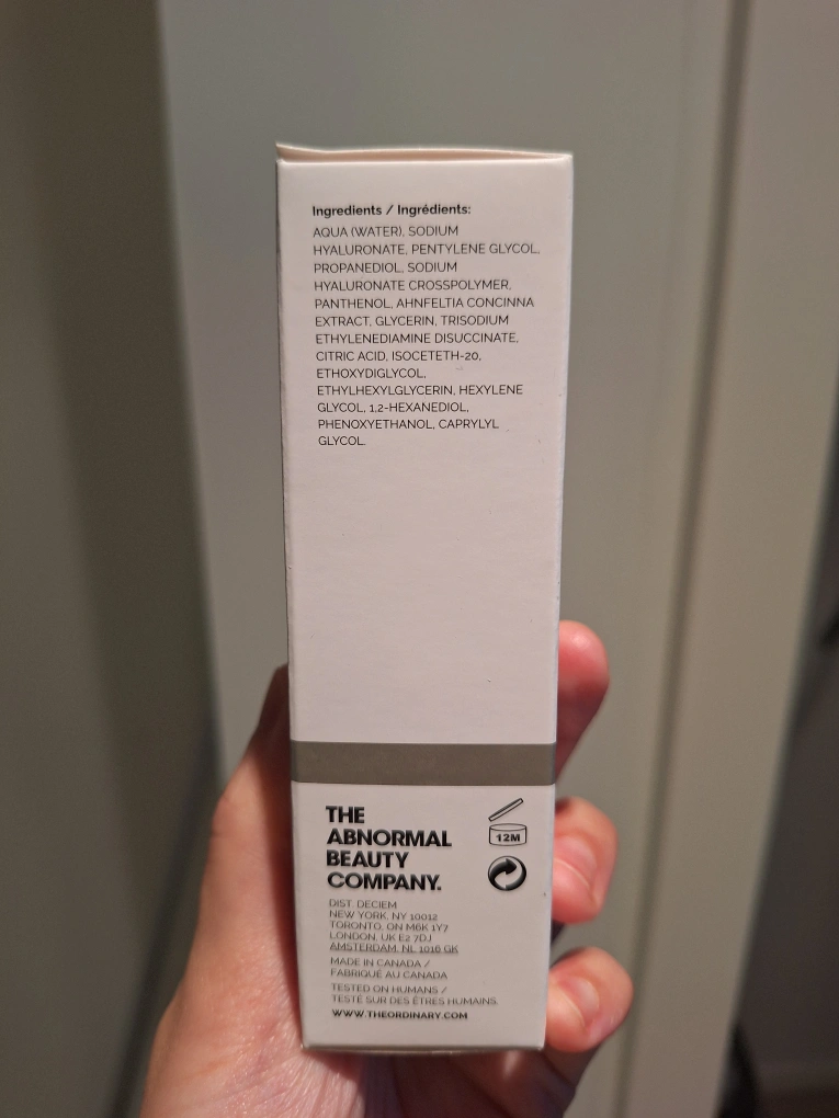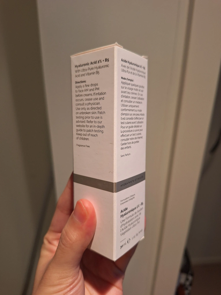 8730 ml bottle of Hyaluronic Acid 2% + B5 serum. A hydration supporting formula with ultra-pure, vegan hyaluronic acid. Fragrance free.
