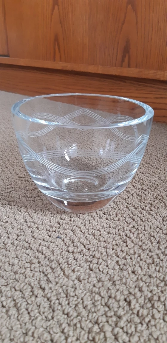 828Thick and heavy glass Etched wavy line design Great as a serving bowl