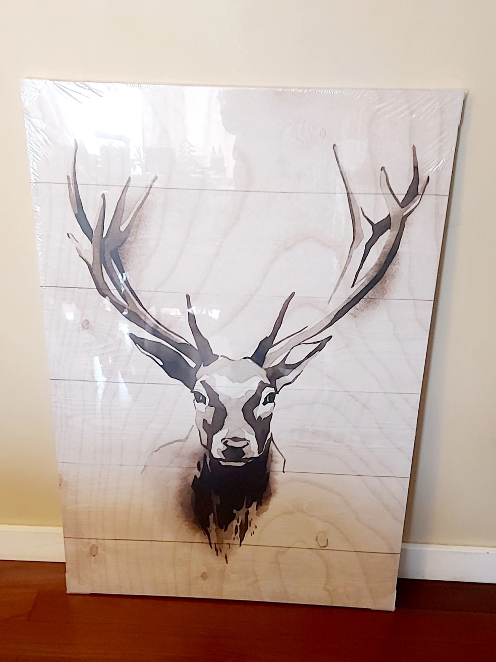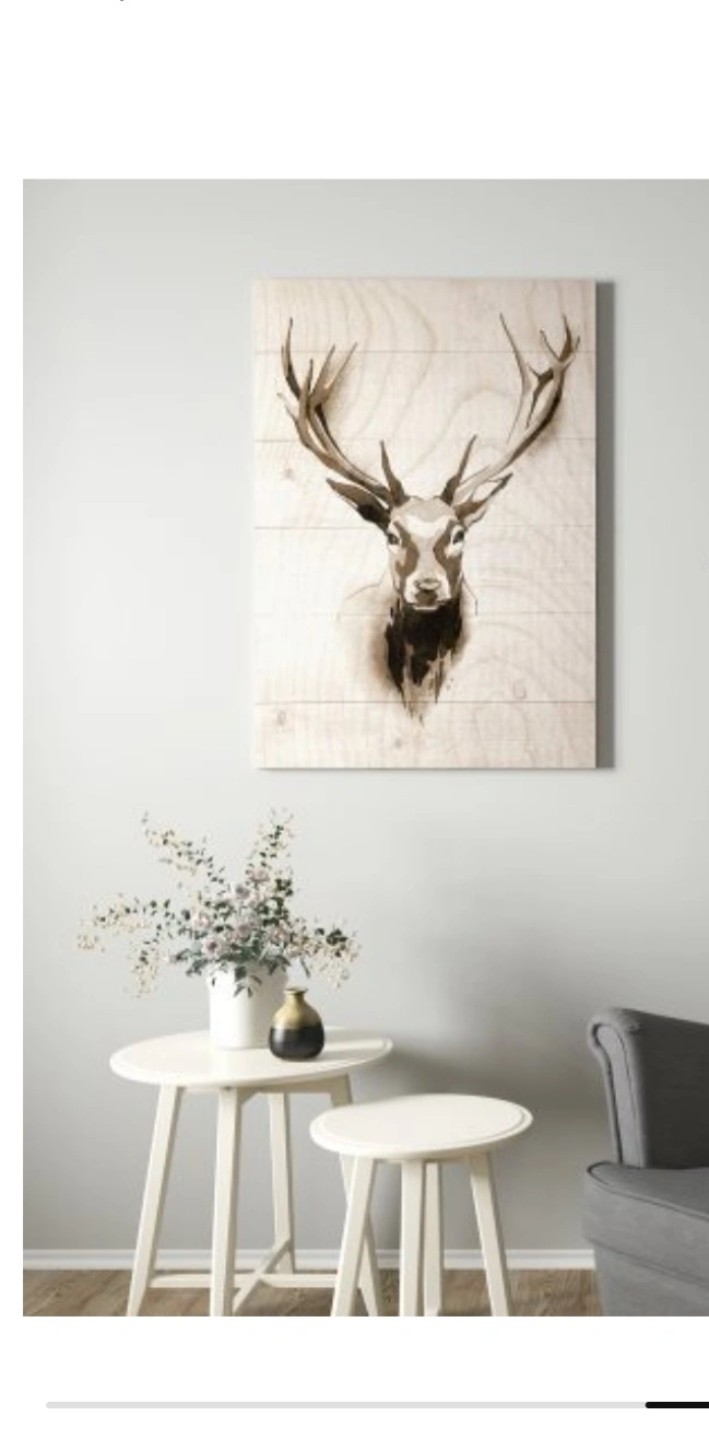 Canvas wall art with a deer print. 70x100cm. Comes with a wood look frame.