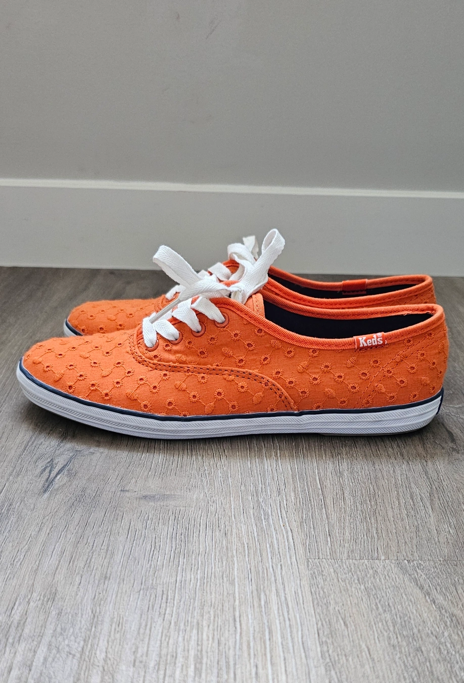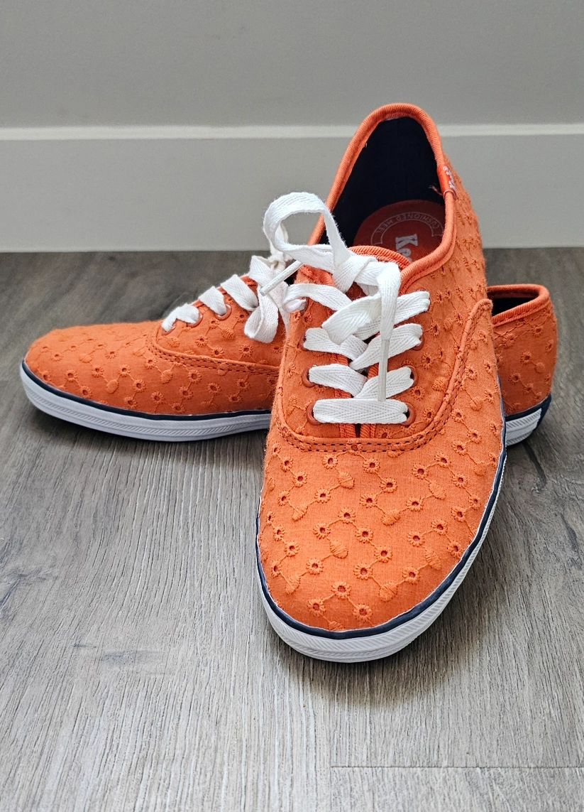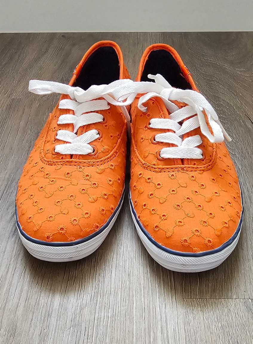 153Orange embroidered Keds sneakers with white laces. Size 6. Only used once inside office. Feet size grew after pregnancy so shoes no longer fits me Pickup in Midtown SW, Airdrie