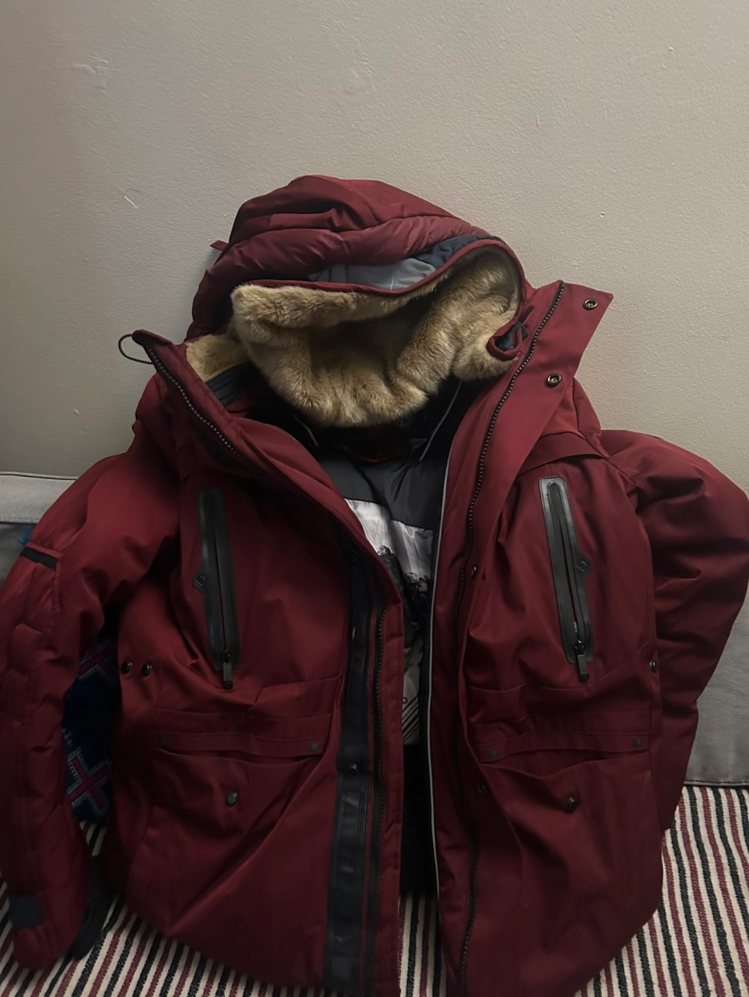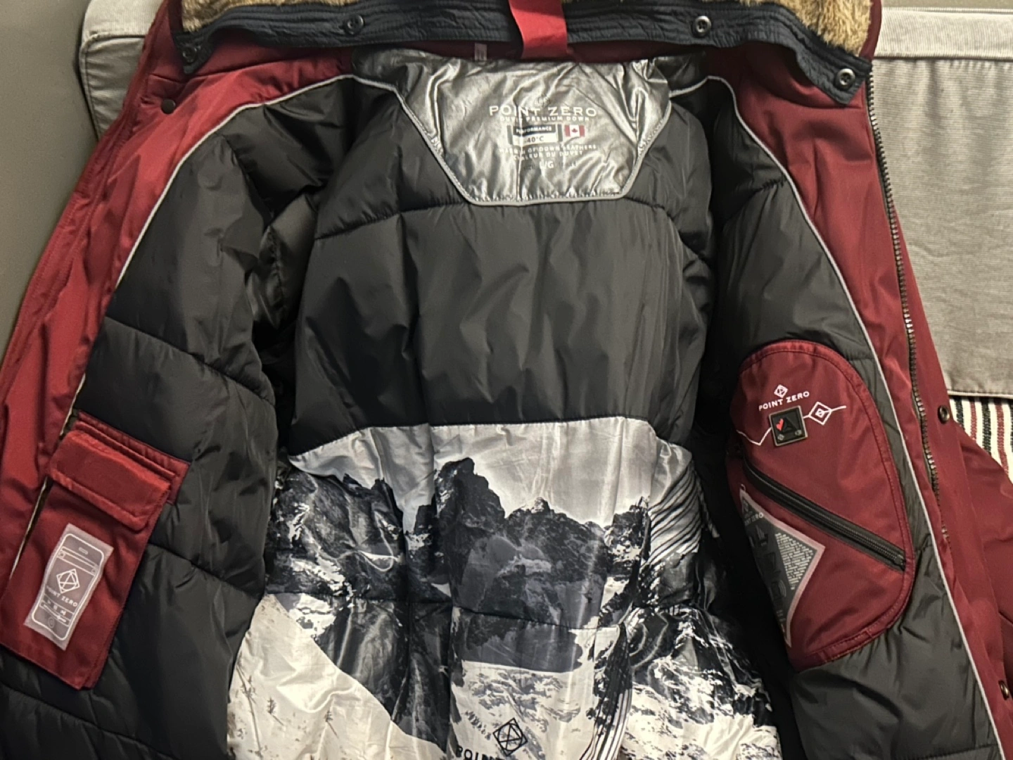 Fine-quality down with a fill power of 750+* has excellent heat retention to keep you warm, even in extreme cold. winter jacket with fur-lined hood, multiple pockets, and a wind guard. Water resistant, breathable, and designed in Canada. Worn less than 5 times