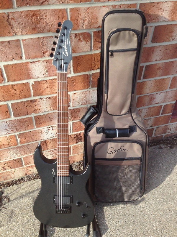 Up for sale I have an excellent condition Godin Freeway EMG electric guitar. Has the same pickups (EMG 81's) as Zakk Wylde uses. The Freeway EMG possesses a sleek and aggressive double cutaway body style, made from a center block of Silver leaf maple with poplar wings to house a fixed bridge, volume and tone controls and a 3 way switch to select between 2 active EMG-81 humbuckers. These pickups combined with the guitar's 25 ½'' scale and Silver leaf maple center, will provide a lethal level of attack and enough screaming sustain to peel paint off the walls!