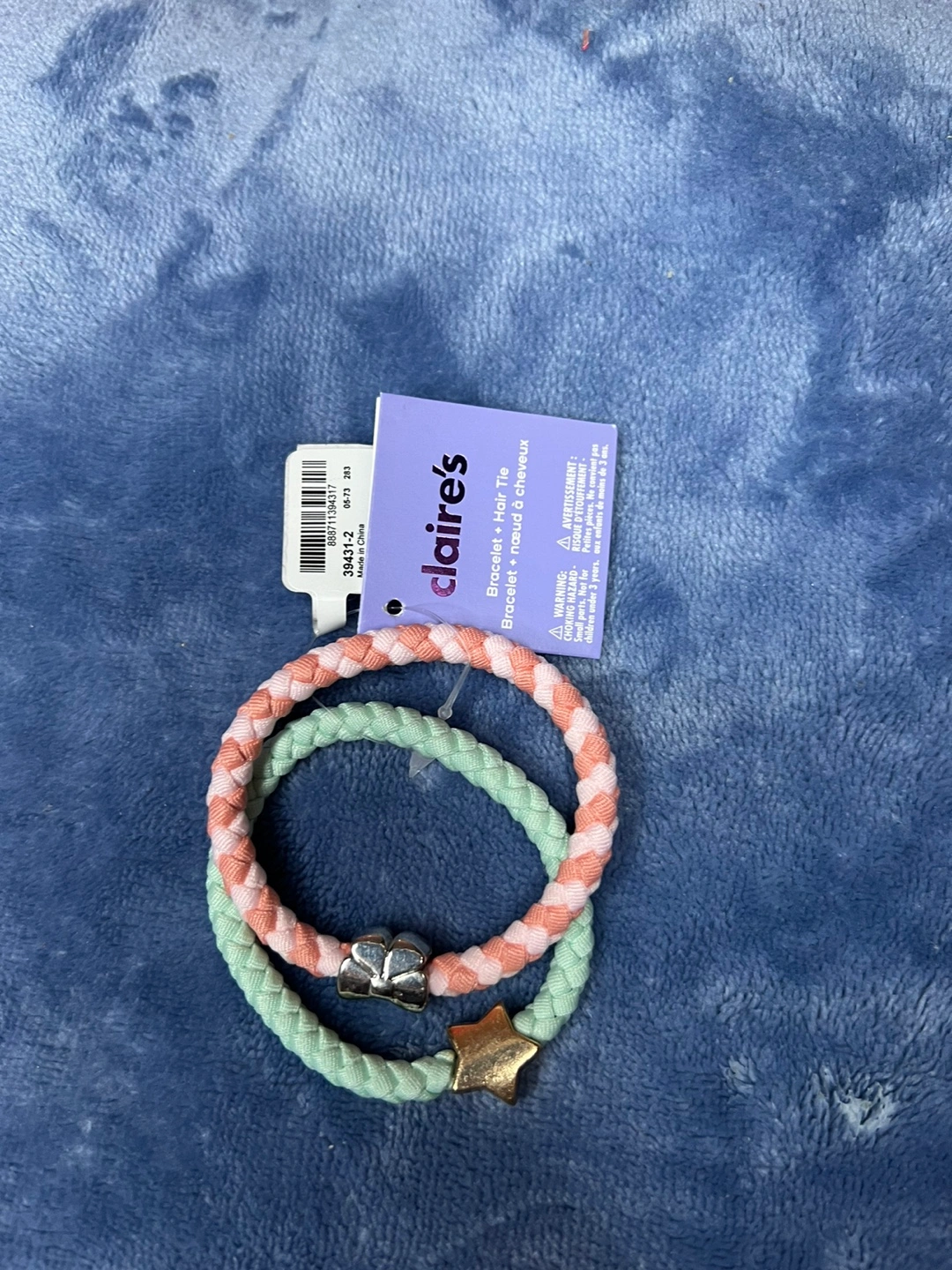 Set of two braided hair ties with star and flower charms