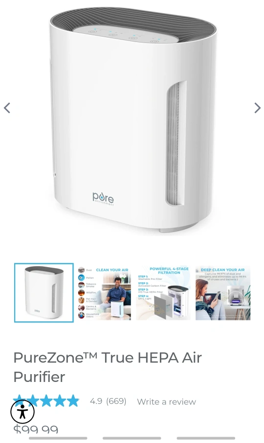 Air purifier with multiple fan speeds, timer, sleep mode, and UV-C light. White.