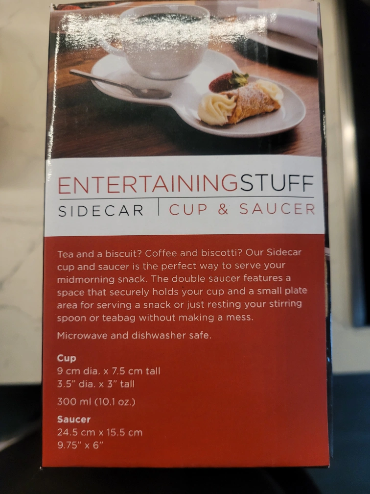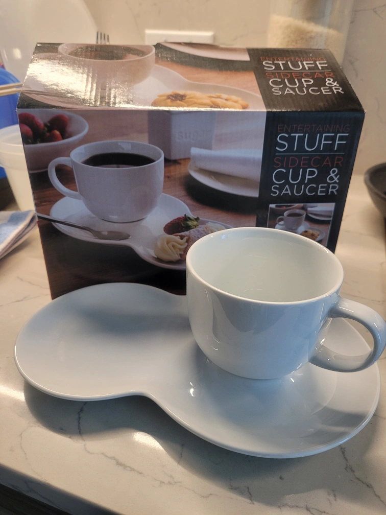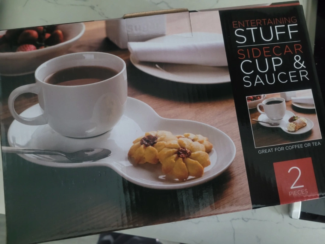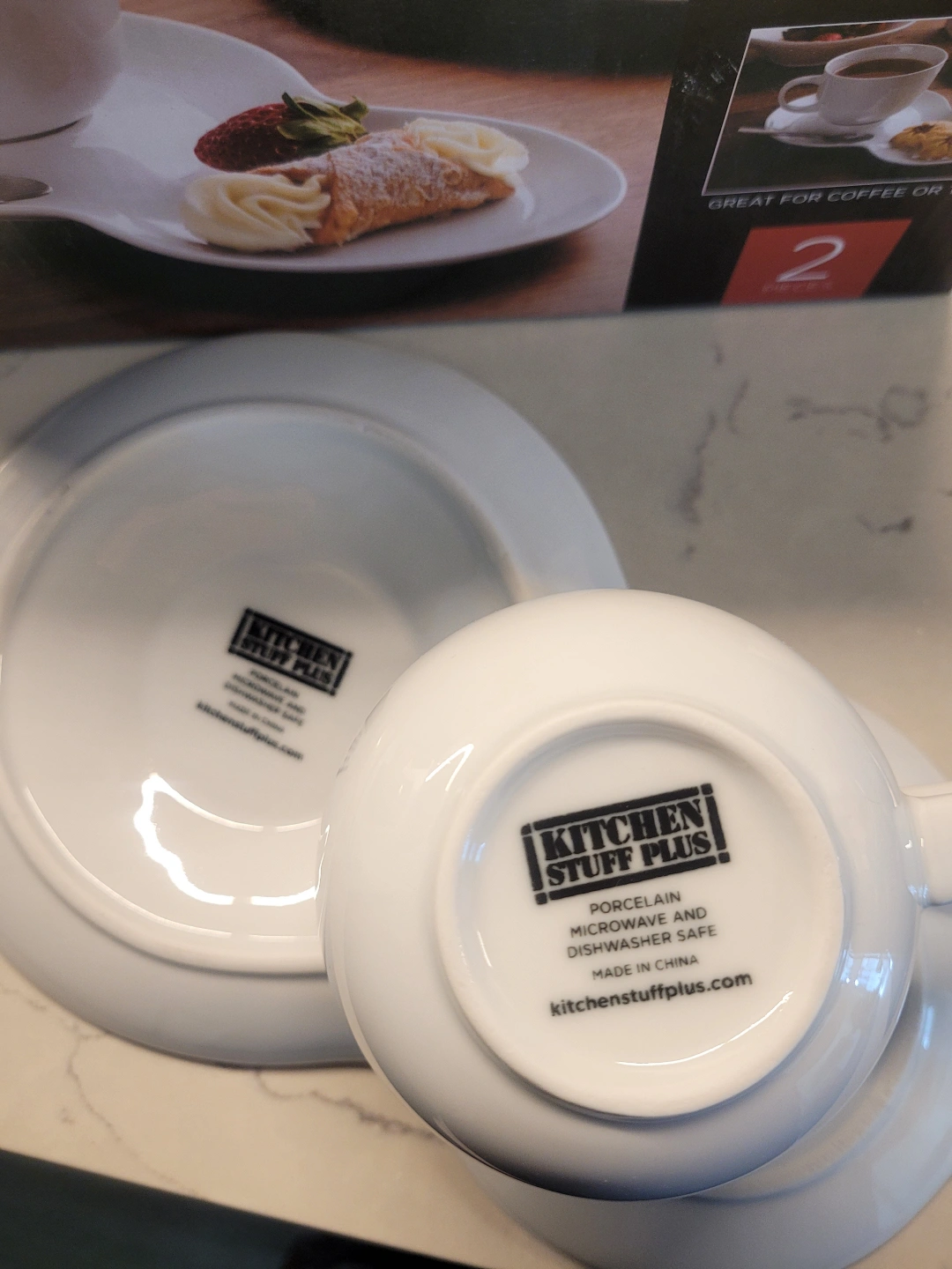 192White porcelain cup and saucer set. Microwave and dishwasher safe.