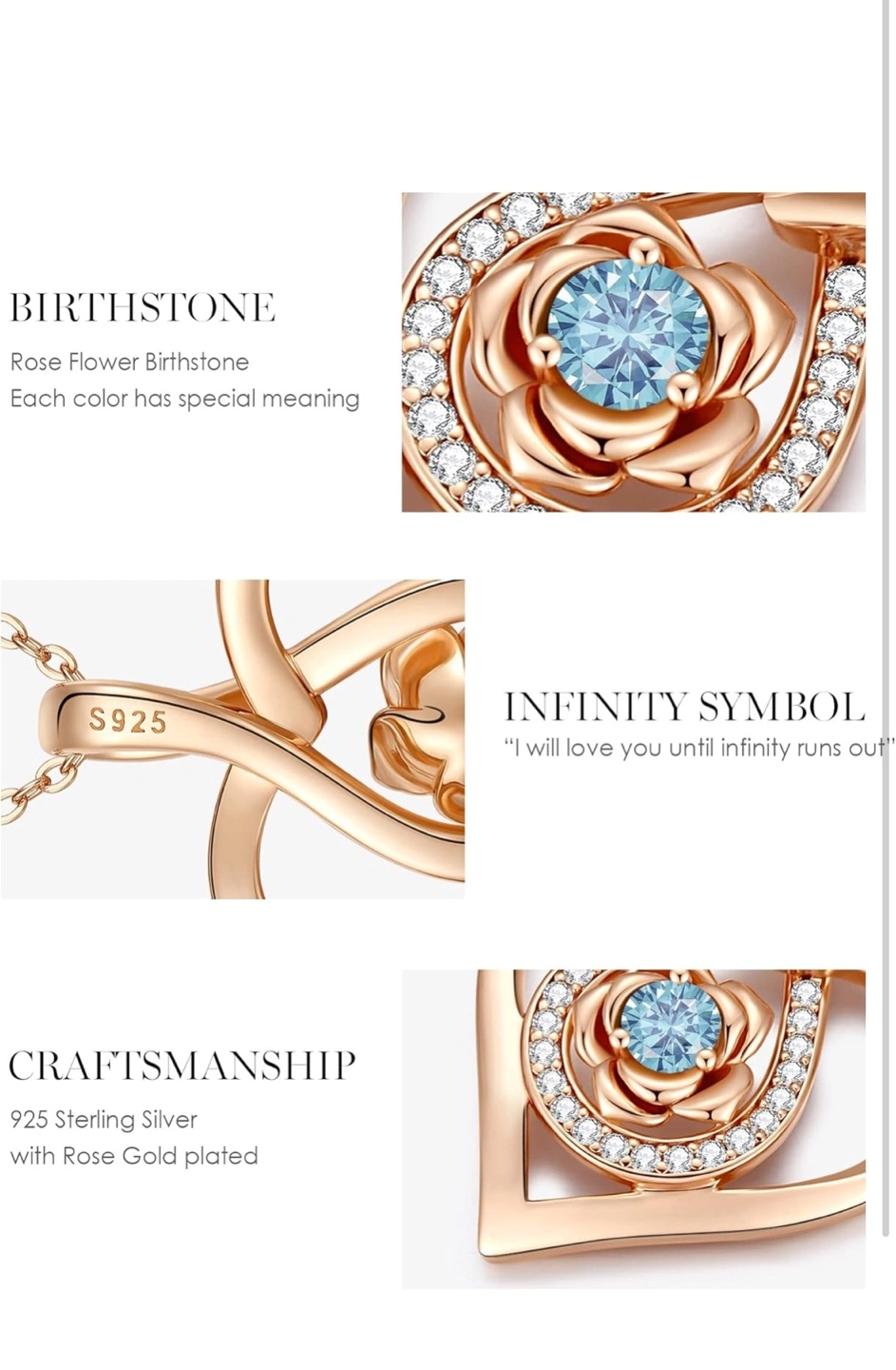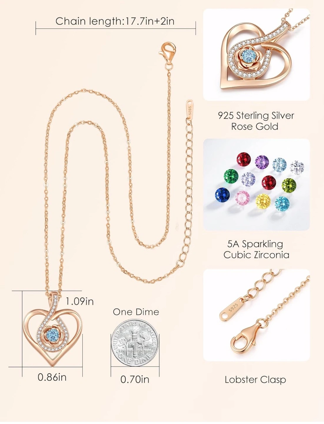 CDE Rose Heart Pendant Necklaces for Women 932 Sterling Silver Rose Gold Flower Love Heart Necklace with Birthstone for Her Birthday Christmas Anniversary $50 each brand new