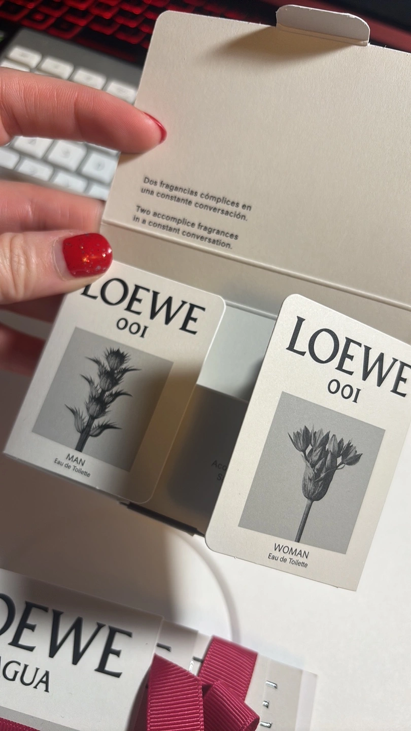 272Loewe Agua perfume sample set. Includes two 1.5mL samples: Woman and Man and 5 others. Comes in original box with red ribbon.๐