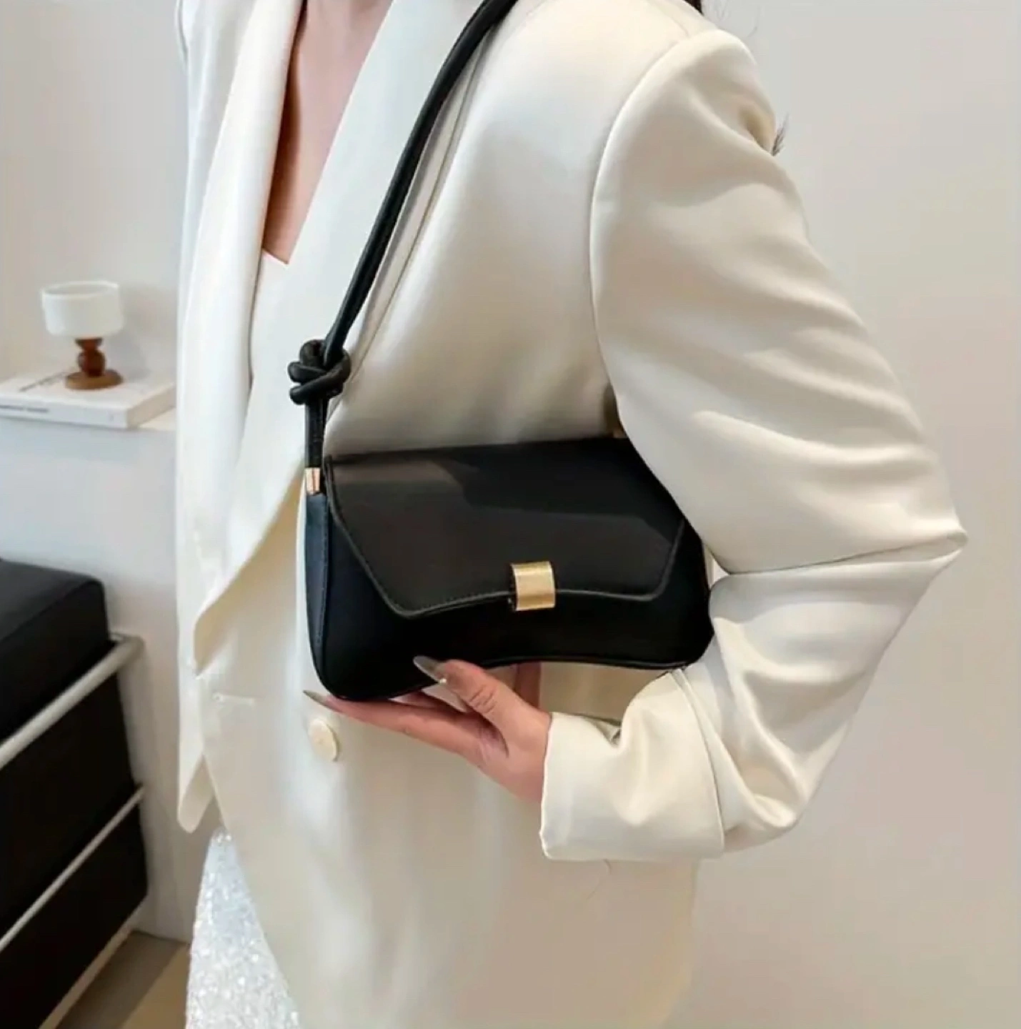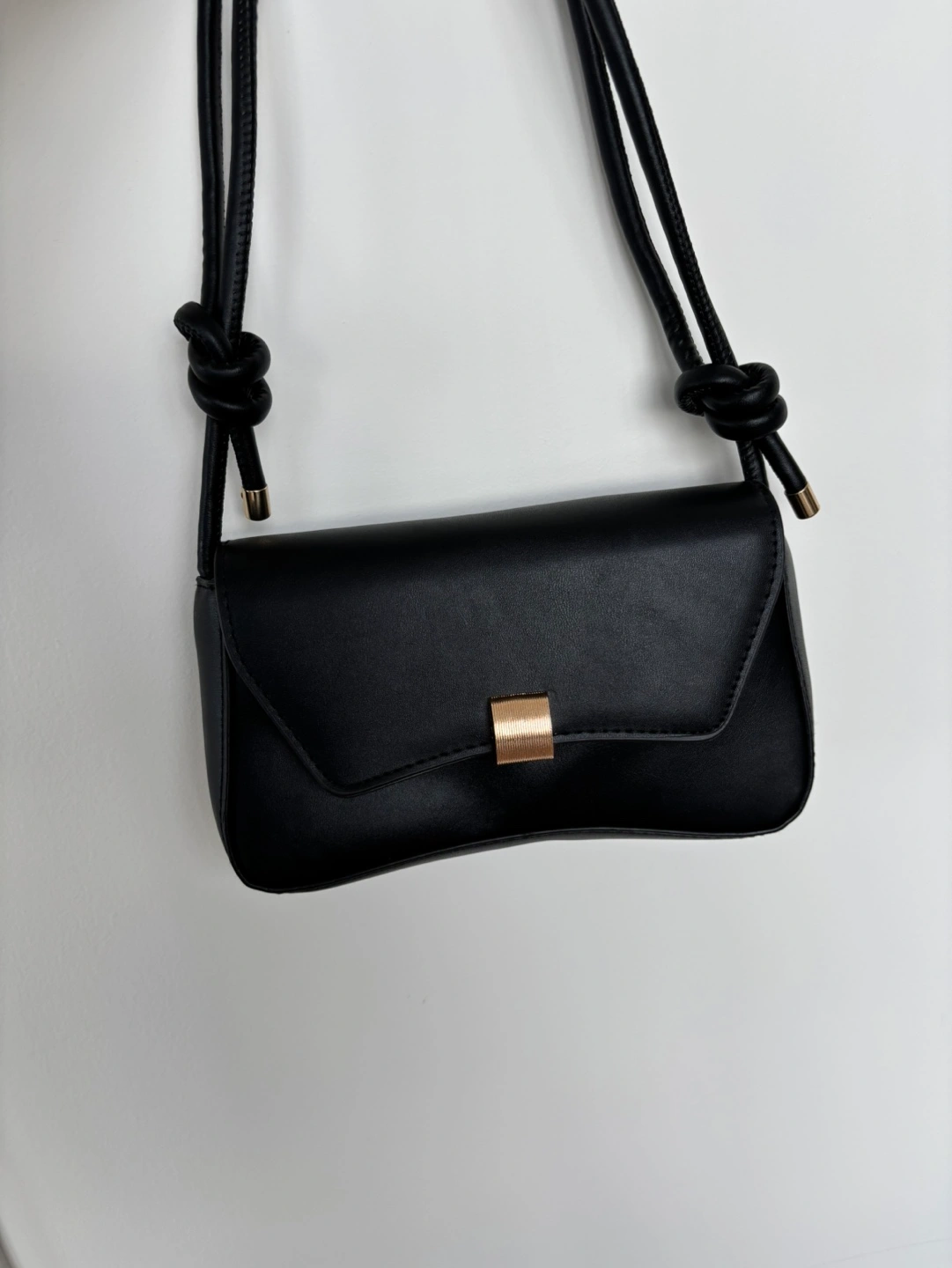 Brand new, never used - Black faux leather bag with knotted strap. Can be worn as a shoulder bag or crossbody.