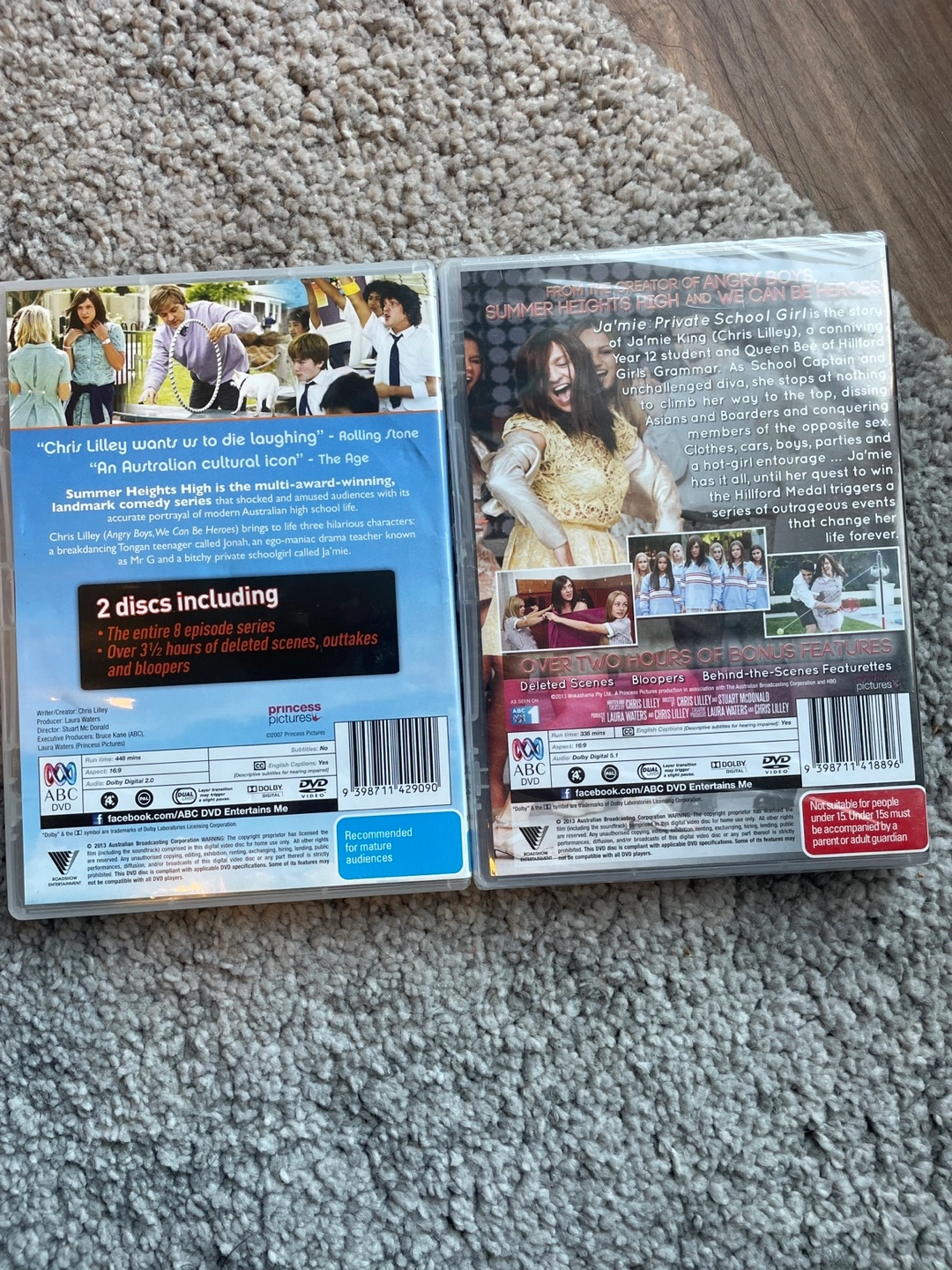 Two DVD sets featuring the popular Australian comedy series, Summer Heights High and Private School Girl. Includes 2 discs each, with over 3 1/2 hours of deleted scenes, outtakes, and bloopers.