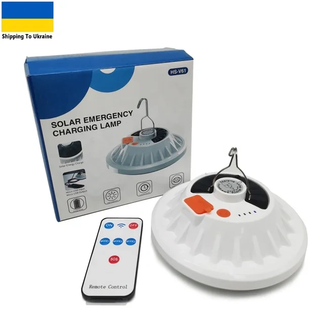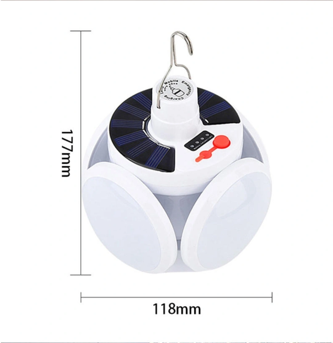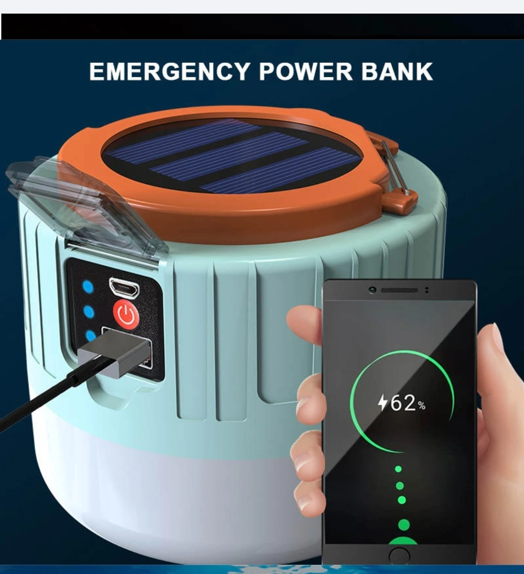 Waterproof and portable camping light with a built-in battery, remote control and USB charging. Can be hung with the hook or used as a standalone light.
