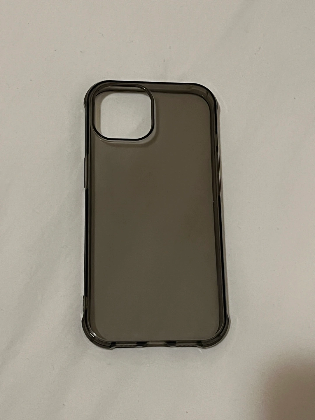 Clear, black-tinted phone case. Never used. Was marketed as iPhone 13 case but it fit my iPhone 13 weirdly around the camera, so I assume it is for iPhone 13 pro or pro max.