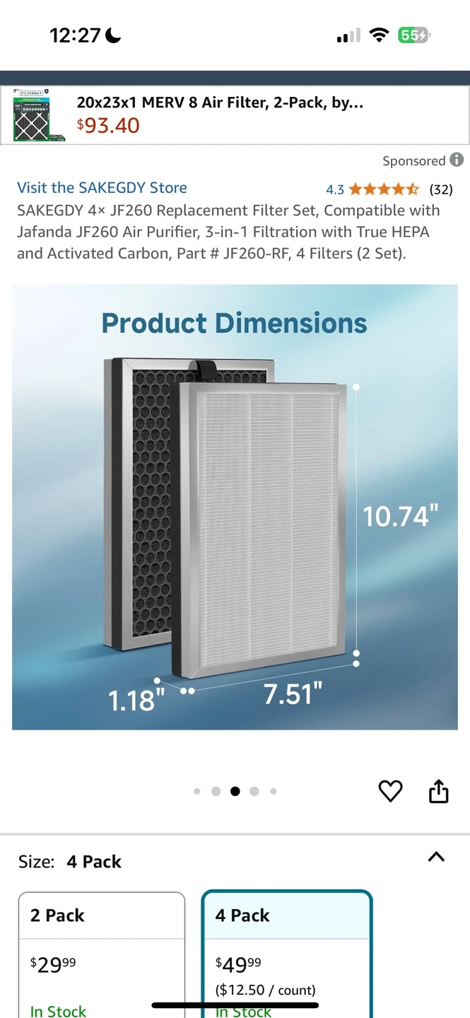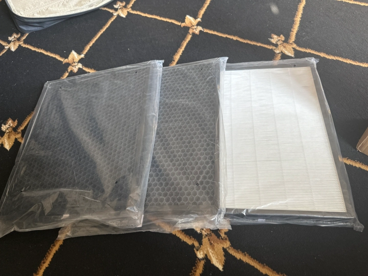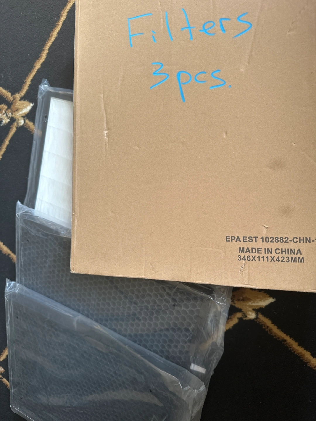 Three-stage air purifier filter set. Includes pre-filter, activated carbon filter, HEPA filter. Replace every six months. , 3 piece of set( sealed)