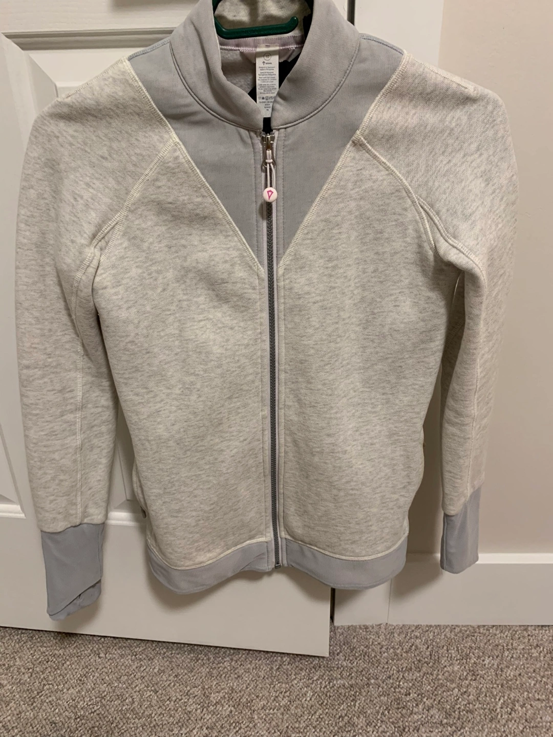 30Aivivva Run : On Track Half Zip. Grey and white colour. Size 10.
