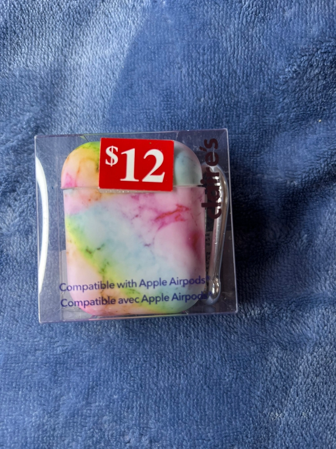 Silicone case for Apple Airpods. Tie dye pattern. Includes a silver carabiner.