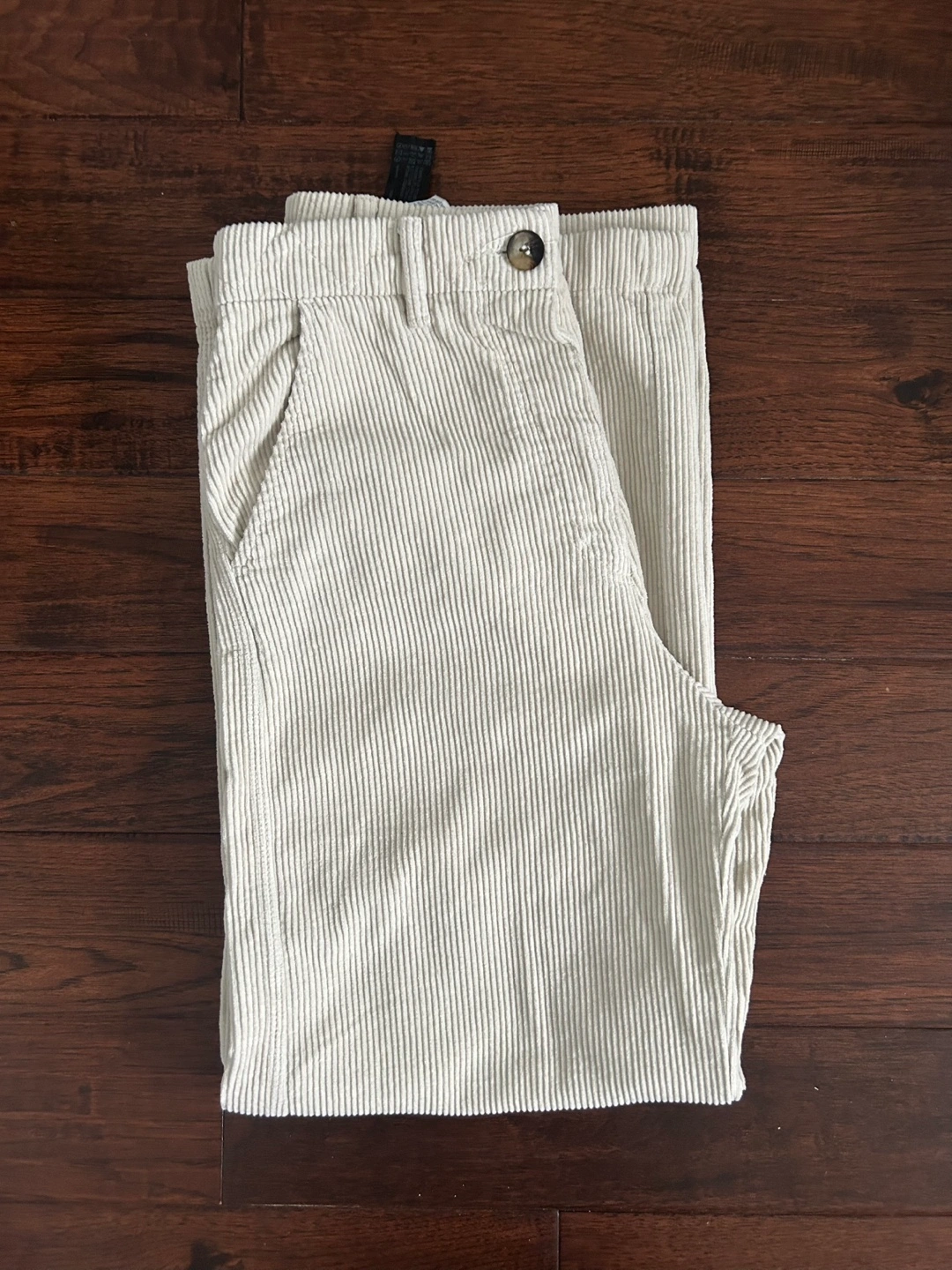 Cream coloured corduroy jacket and pants set. Like new, only worn once! The jacket features a button closure and an oversized relaxed fit. The pants have a straight leg and a high waist. Jacket is xs, pants are size 2.