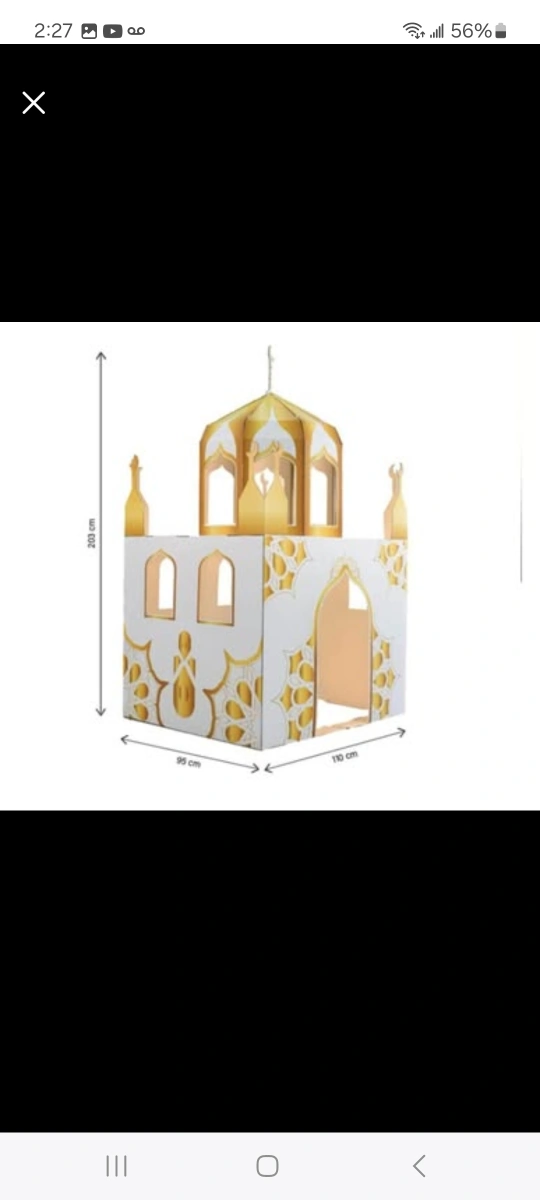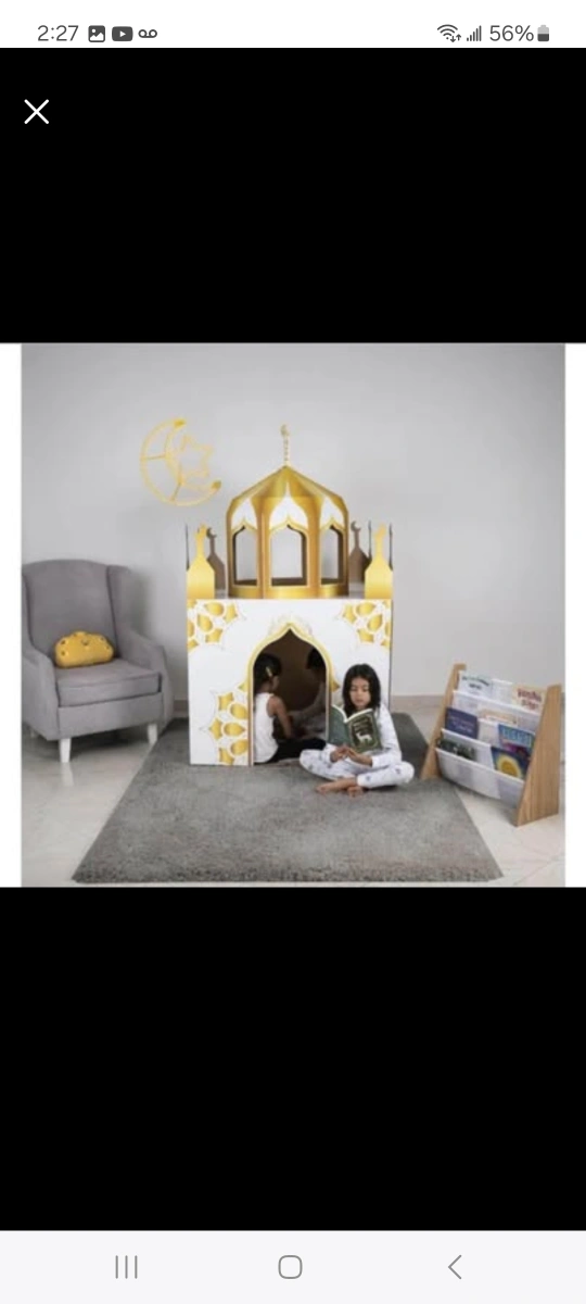 Cardboard play tent in the shape of a mosque. Easy to assemble and comes with all the parts needed. Great for imaginative play.