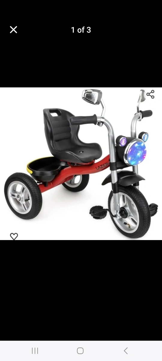 113Lazery Bike with Air Tires -Kids Tricycle for Toddlers with Basket, Lights, Sound - Mini Riding Toy for Training Motor Skills, Learning Balance - Christmas & Birthday Gifts for Girls, Boys