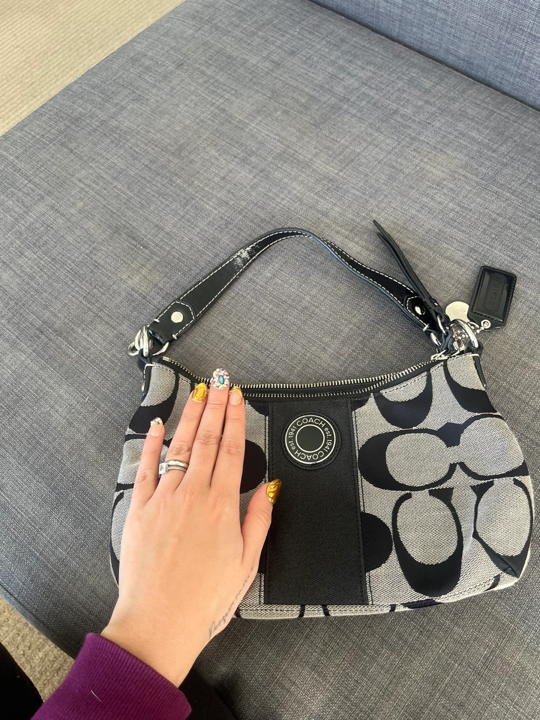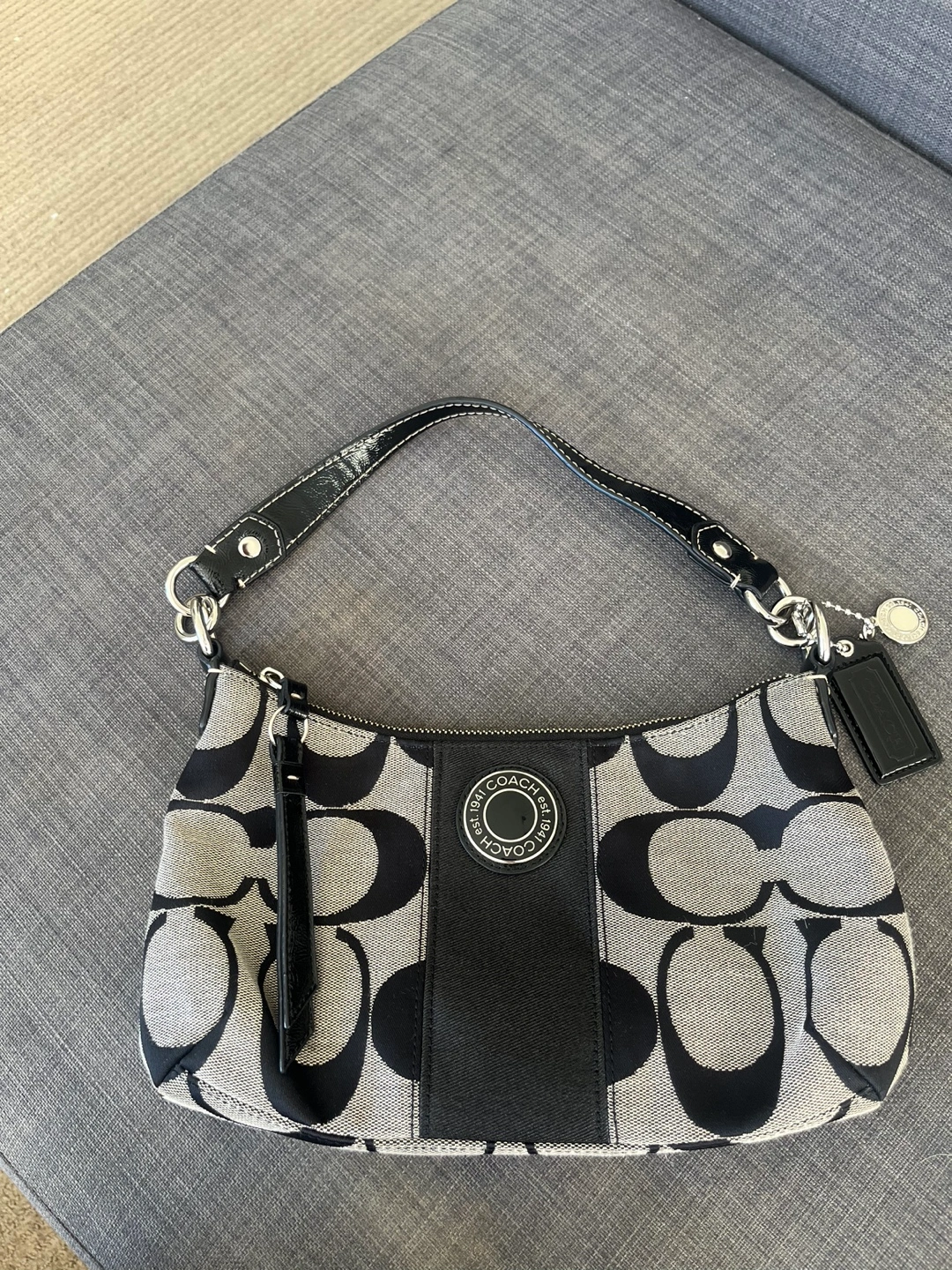 Buy & SellCoach BagCoach Bag$80Small black and grey Coach handbag with a signature C pattern and black leather trim. Comes with a Coach charm.BrandCoachWHERE TO MEETDowntownView MapSELLERMaria DiazDowntown16619 reviews2 chats·0 favorites·35 viewsSEND CHAT TO SELLERHi Maria Diaz! I’m interested in your listing.Hi Maria Diaz! I’m interested in your listing.Get the Karrot app to chatSign In to chat