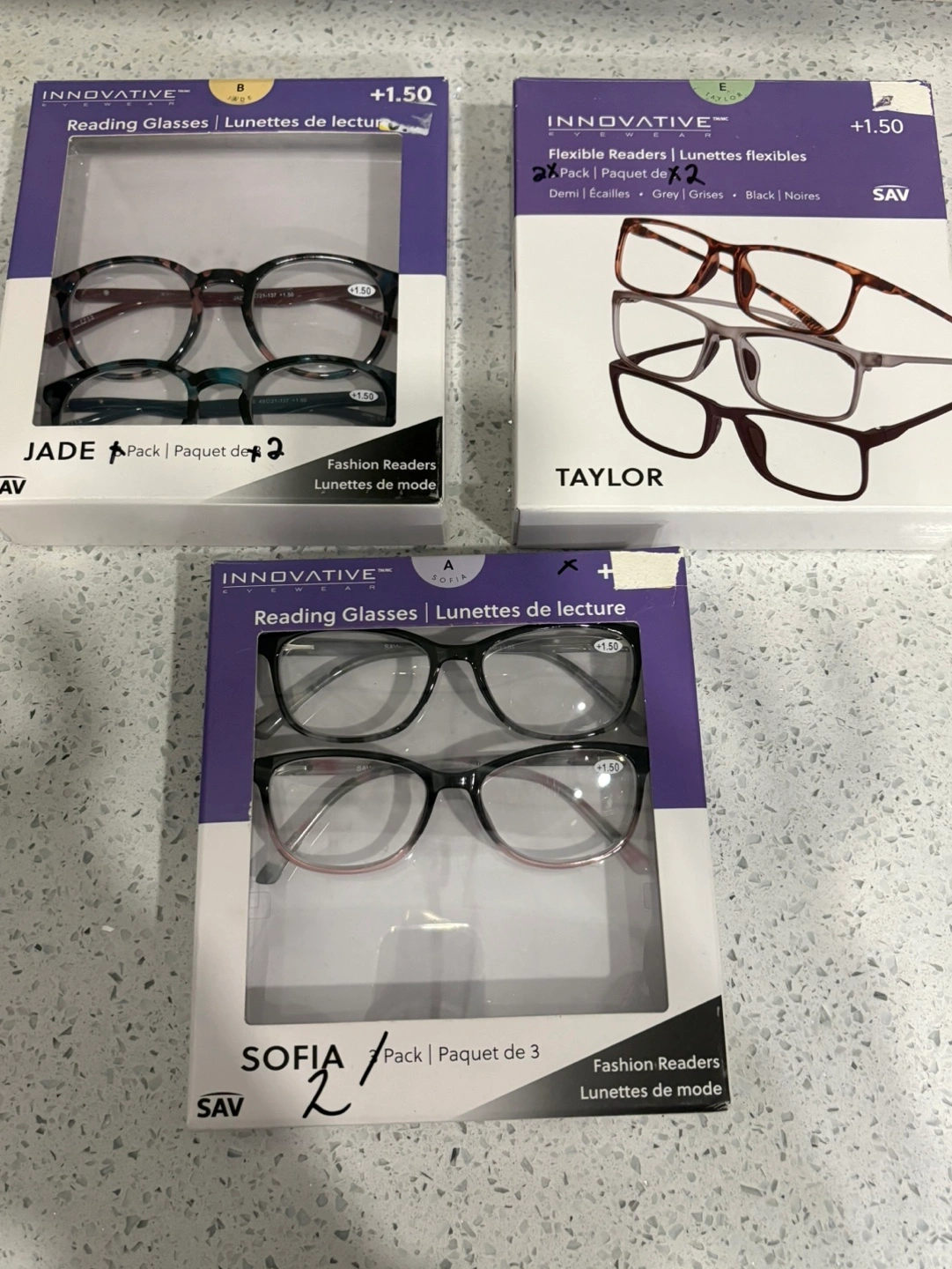 Reading Glasses: +1.25, +1.50, +1.75, +3.00