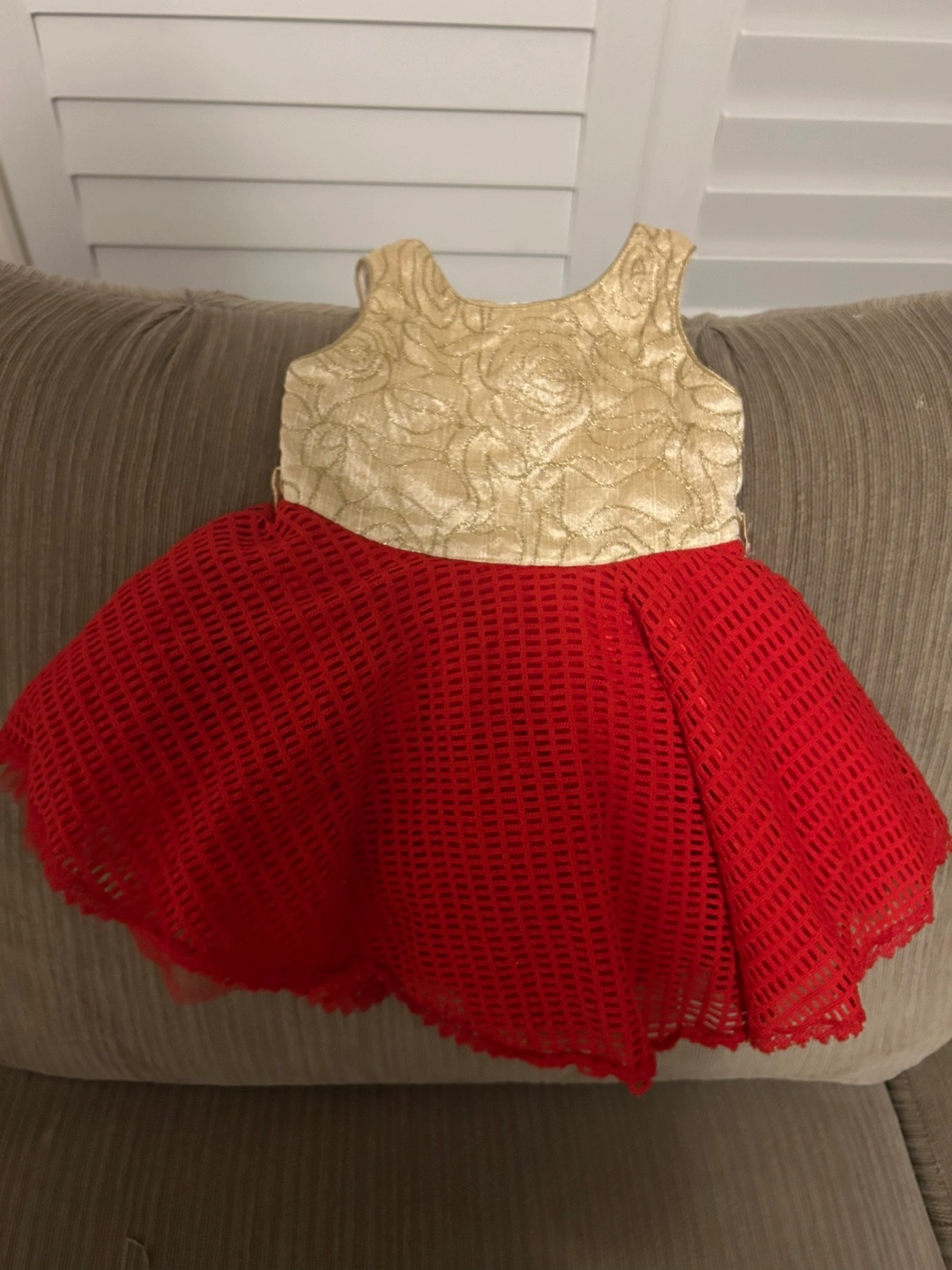 257Red and gold sleeveless dress with a tulle skirt. Size 18-24 months. Excellent condition.