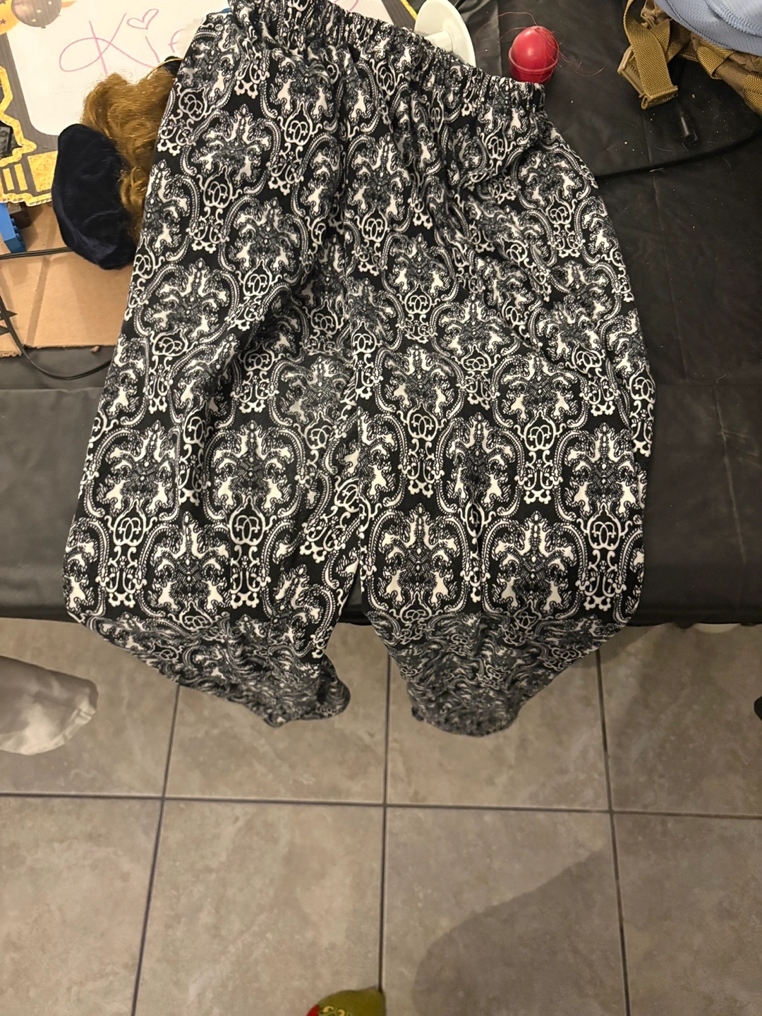 Womens black and white patterned pants. Elastic waistband. Plus size.
