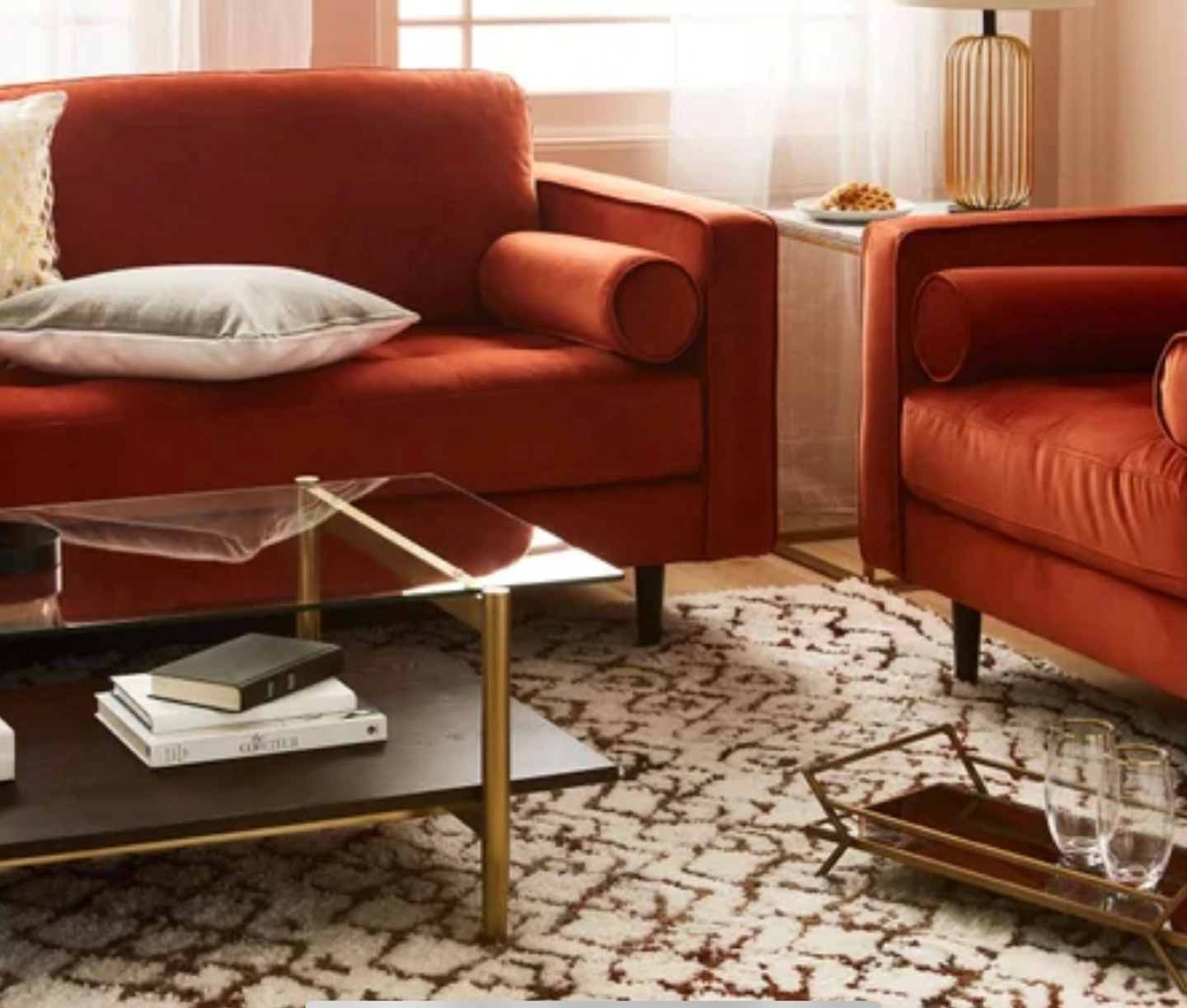 Rust Velvet Sofa