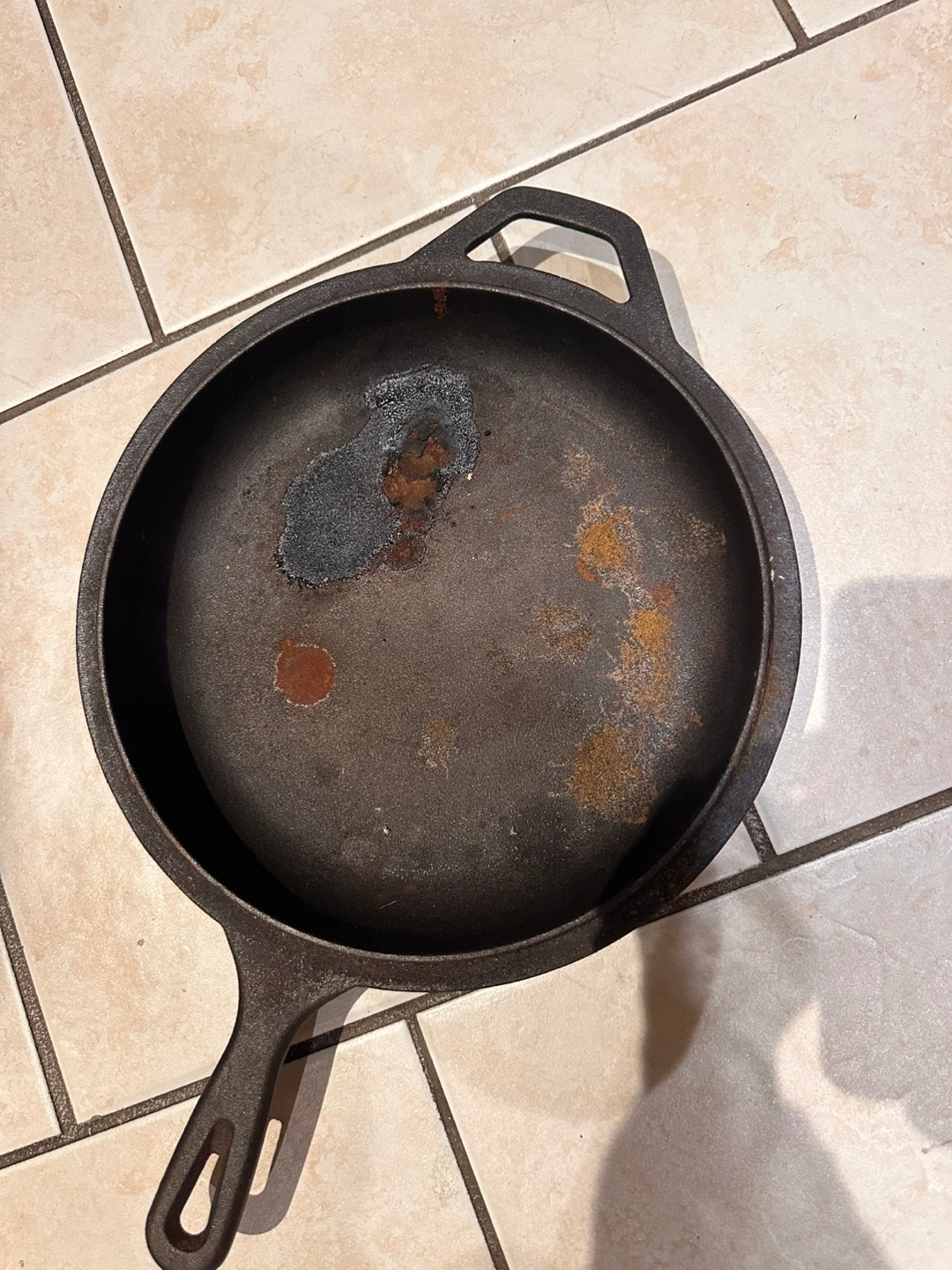 Large cast iron skillet. Great for cooking on the stovetop or in the oven.