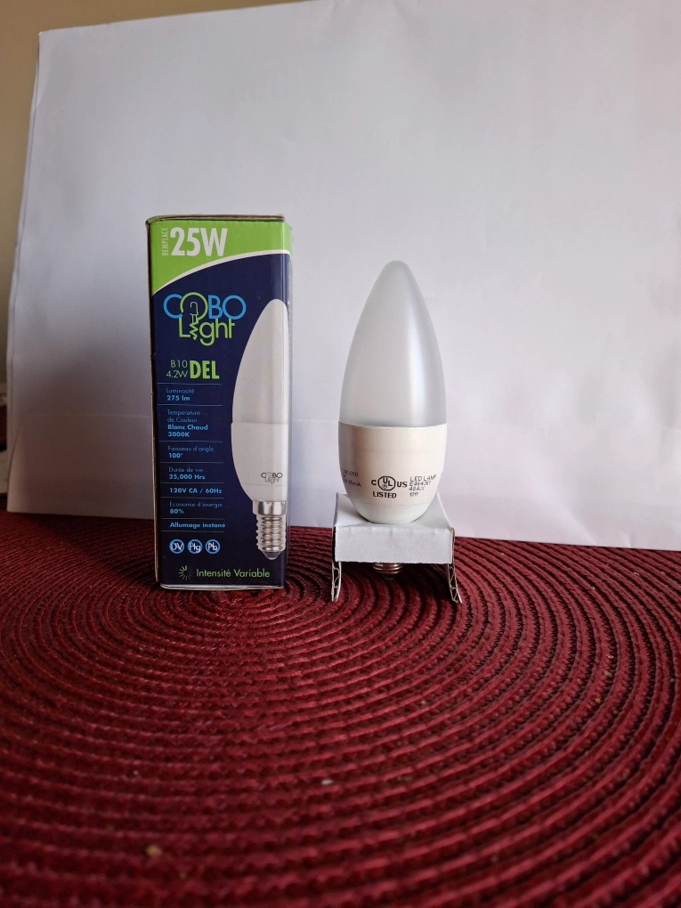 Pack of 4, Cobo Light LED Candelabra Light Bulbs B10, Candle Shape E12 Base | Decorative, 4.2W equivalent to 25W Replacement 120V AC / 60HZ for Chandelier, Ceiling Fan, Non-Dimmable, Daylight 3000K,