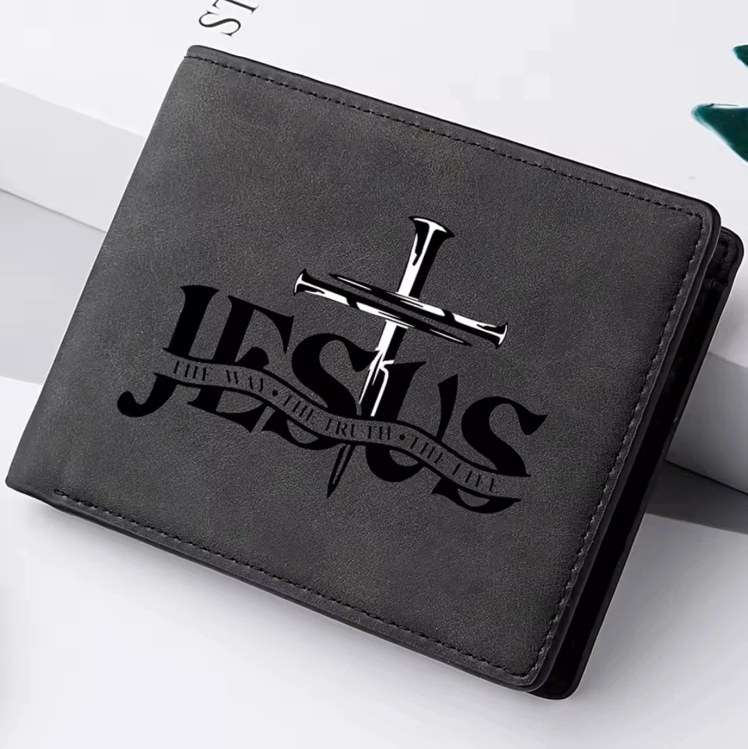 This bifold wallet features the "Jesus The Way The Truth The Life" design with a cross and nails graphic. It's a stylish accessory for anyone with religious beliefs. Made with durable material.