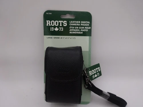 The Roots Digital Camera Pouch Bag in black synthetic leather is perfect for protecting your camera on the go. This large size bag is compatible with Canon, Sony, and other universal camera brands. Its carry/shoulder design makes it easy to transport, and the material is durable enough to withstand daily wear and tear. With its sleek black design and Roots brand, this camera pouch is both stylish and functional. It's a must-have accessory for any photography enthusiast.