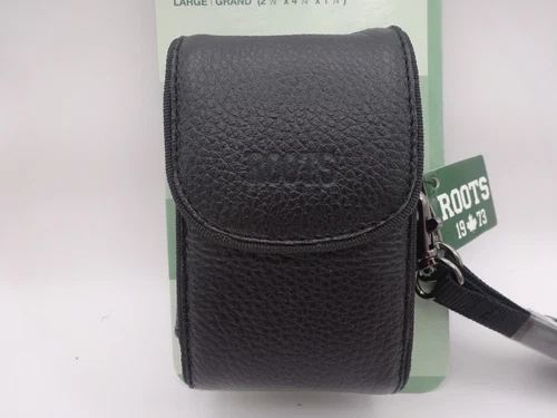 Roots Vintage Style Digital Camera Pouch - Black Leather - Large