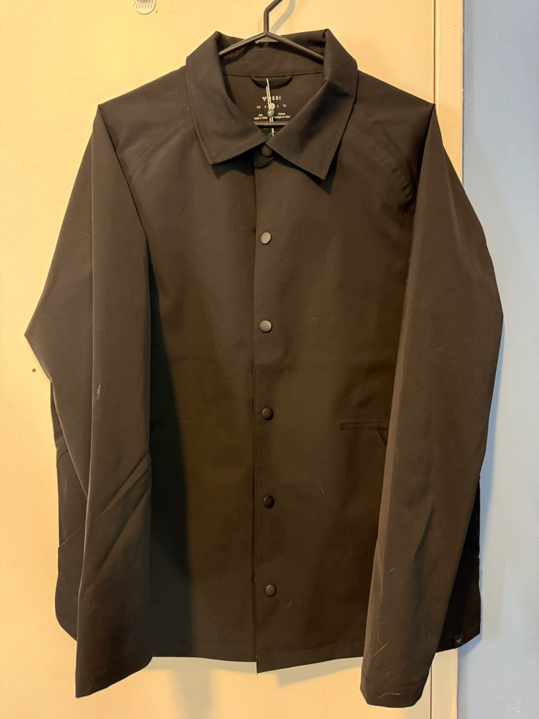 103New condition, comes with tags. Size: Medium Colour: Black Chest: 45-46"/114-117cm Length: 29.5"/75cm Sleeve: 35"/90cm Waterproof Snap Closures Internal Chest Pocket Layer Friendly Fit Wrinkle Resistant Collar Loop Upgrade your spring fit and forget the forecast. We’ve made a classic coach jacket in waterproof twill, so you can stay dry and look good while doing it.