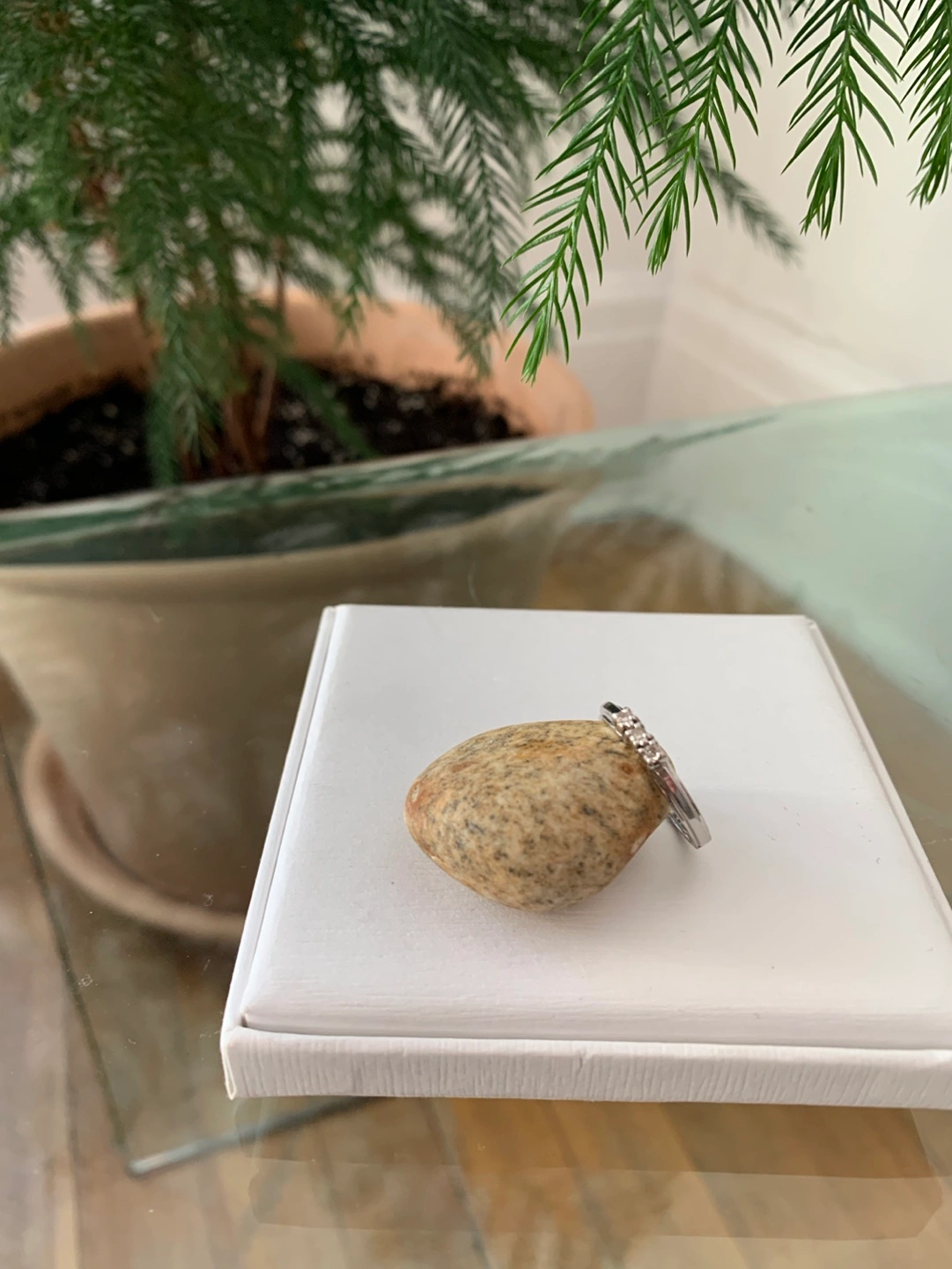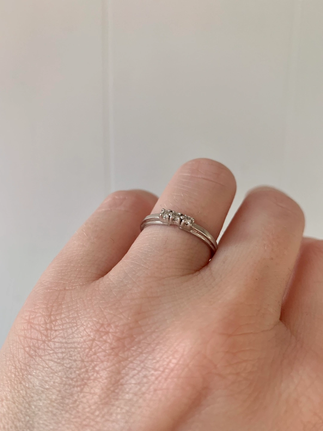 Simple 10K gold plated band with three small stones. Elegant and understated design. Perfect for everyday wear.