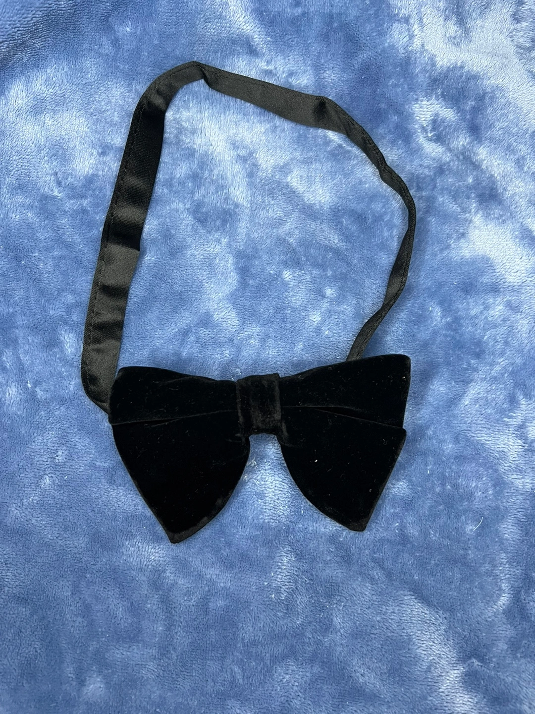 Classic black velvet bow tie. Adjustable neck strap. Perfect for formal occasions.