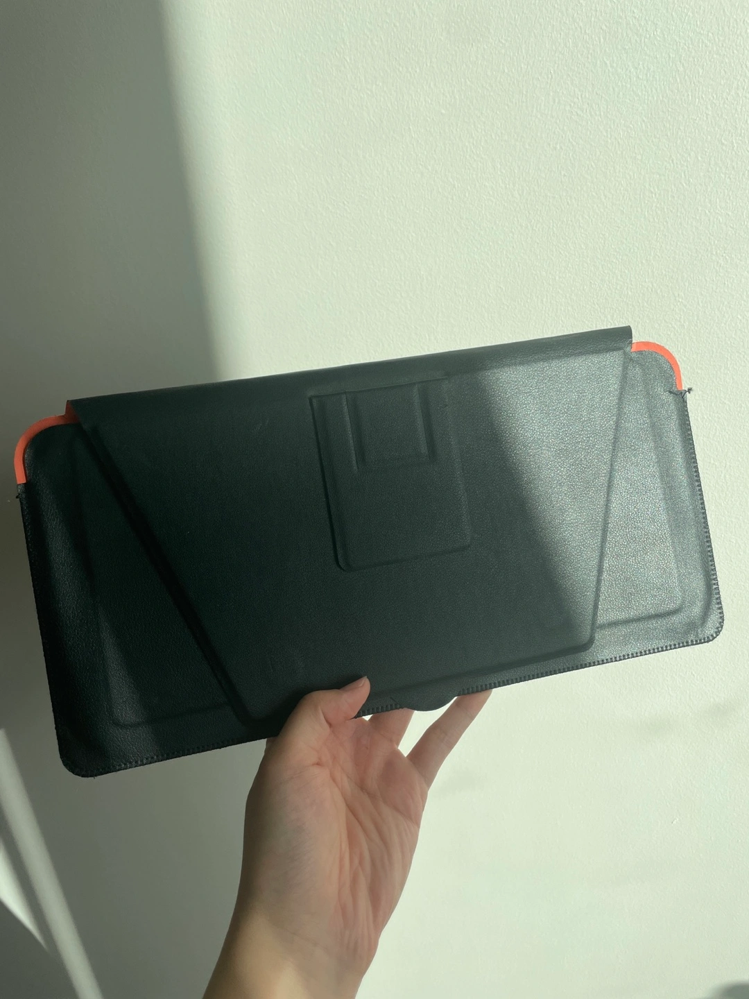 Slim Bluetooth keyboard case thatās great for travel. Has an external and internal stand built in so you can prop up devices like your phone or tablet at a nice angle while working. Compatible with any small keyboard (I had it for my Logitech MX Master Keys Mini.