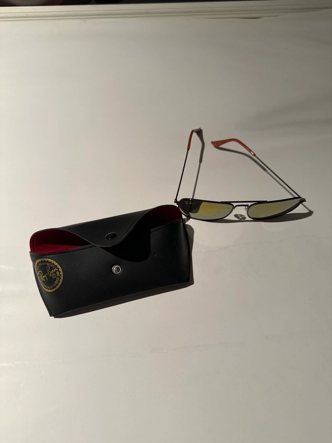 Aviator-style sunglasses. Brown gradient lenses. Black metal frame. Comes with a black case. Model number 3136B.