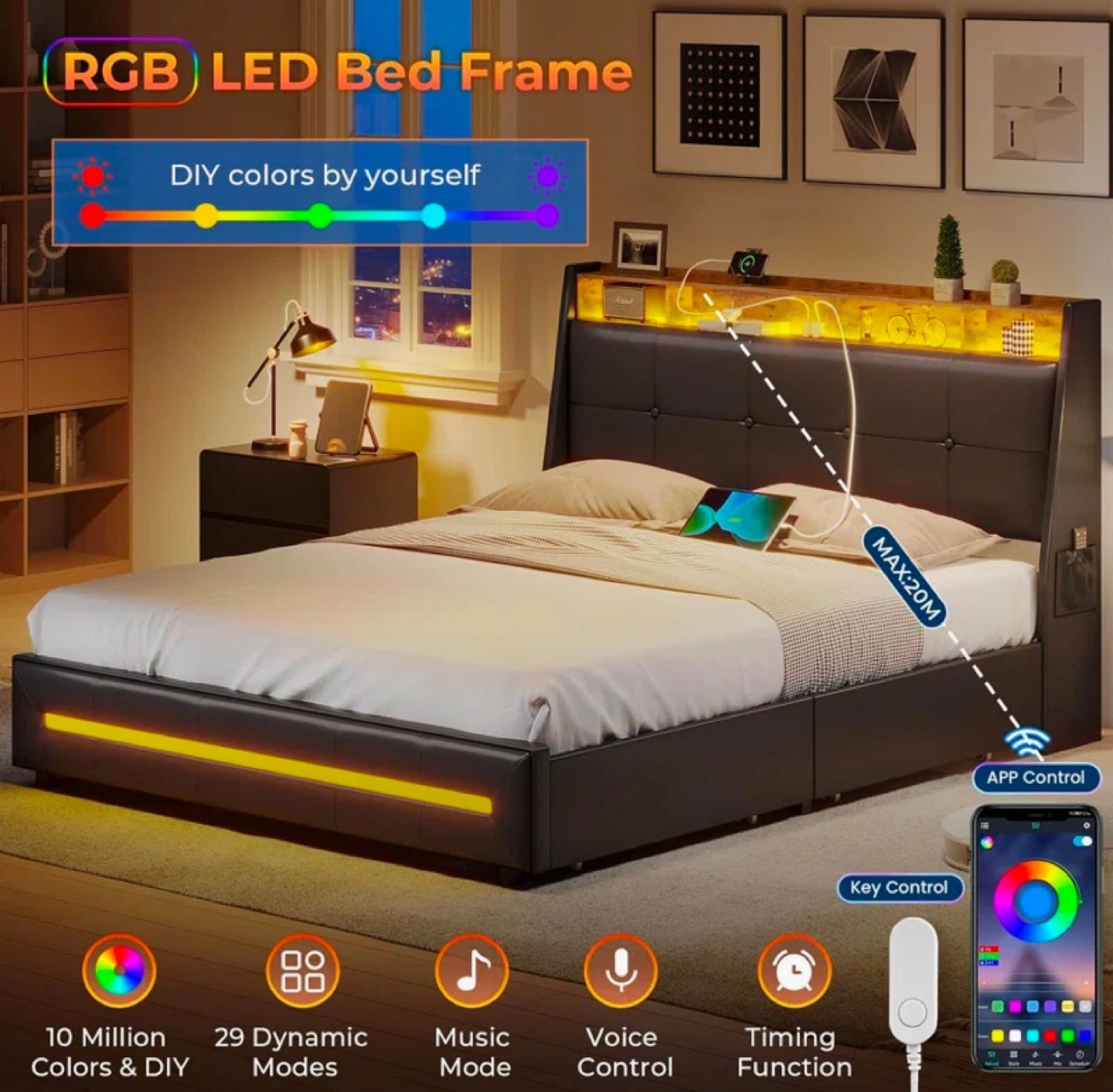|Unopened box| Queen Size LED Bed Frame with Underbed Storage