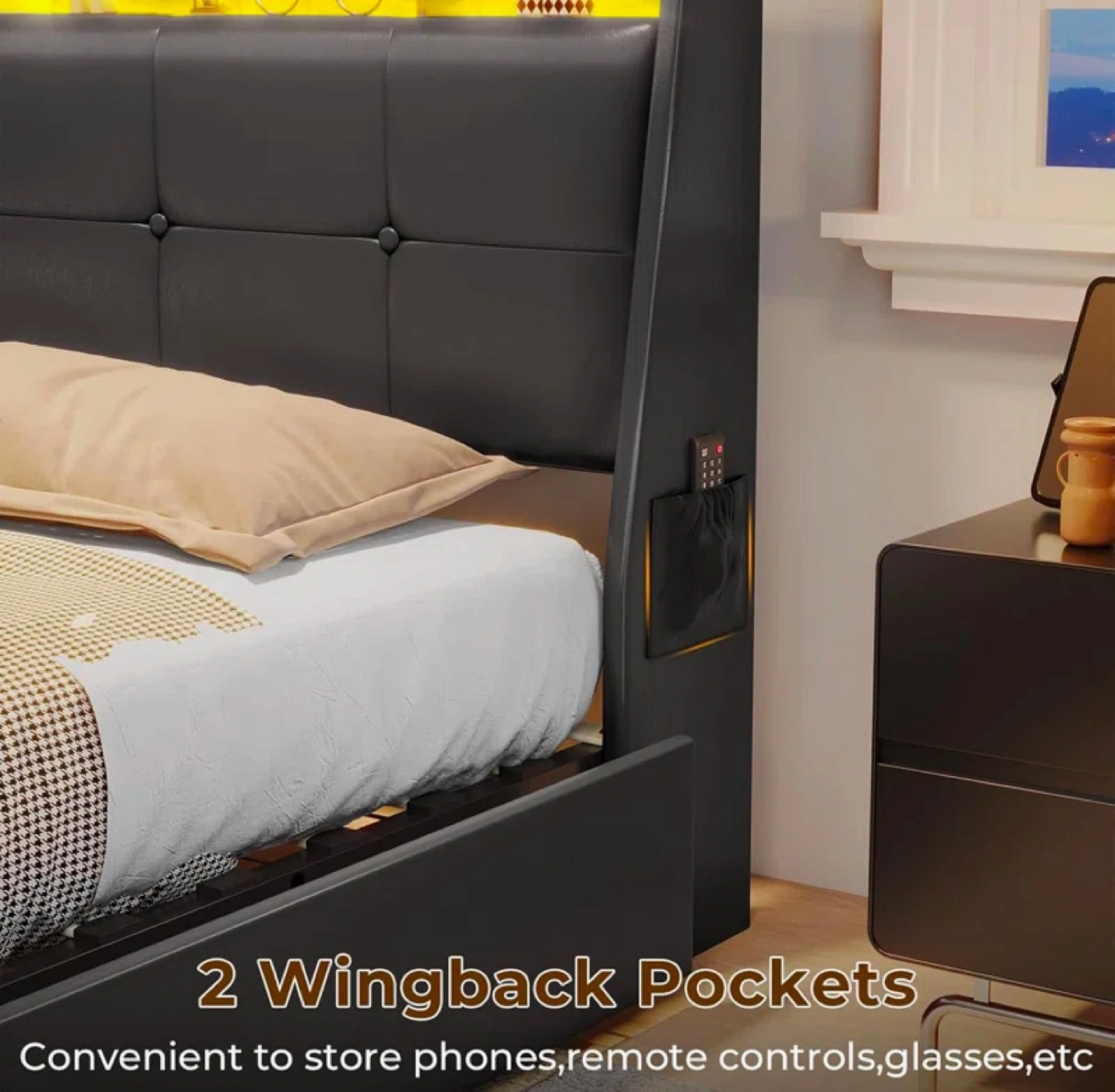 Charging Station 2.Upholstered Backrest 3.Wingback Design 4.Spacious Drawers
