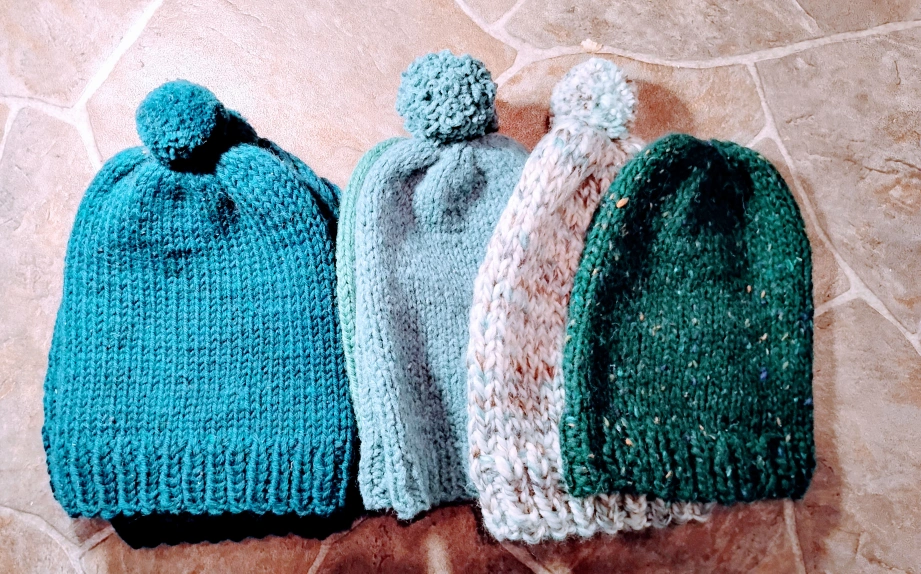 Warm, hand-knitted winter hats. Various colours Quality knit Irish Wool