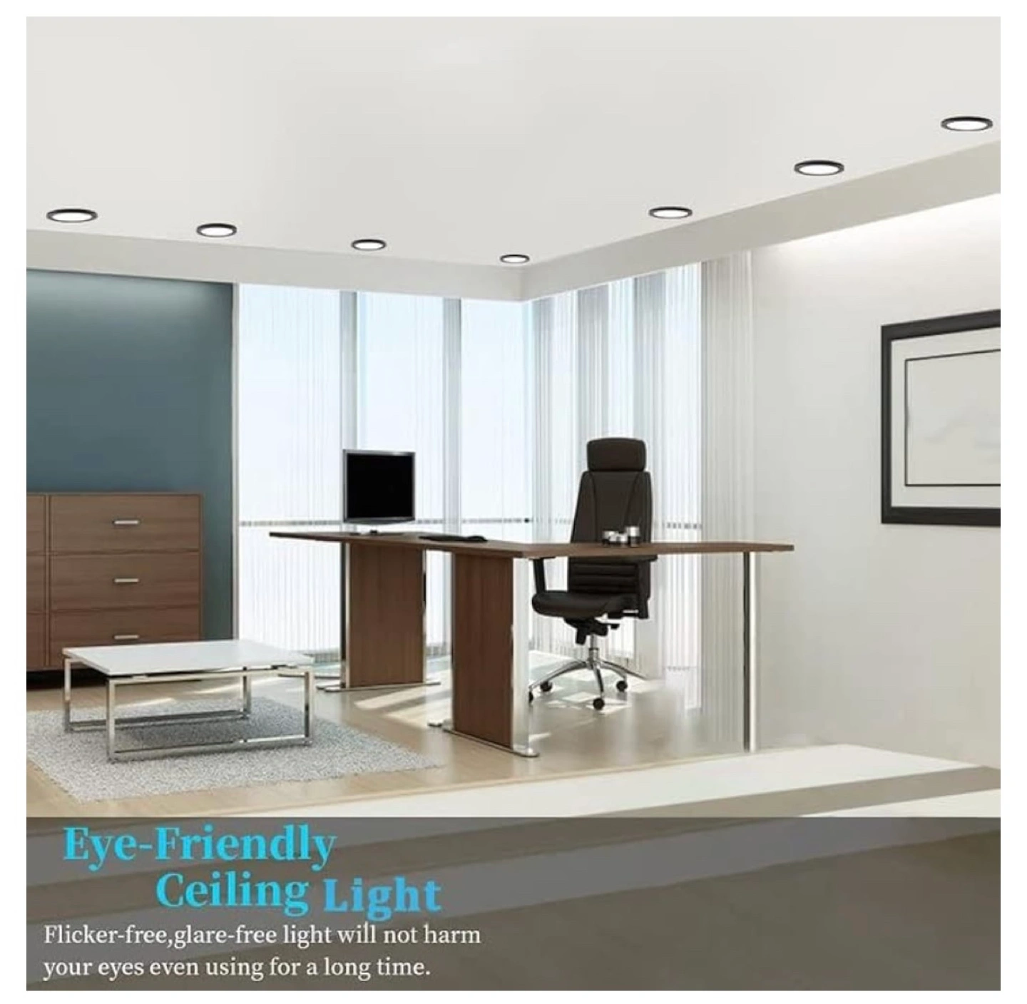 Slim LED ceiling lights. 12W each. Smooth dimmable. Compatible with Lutron, Leviton, Eaton, Kasa, Philips, GE dimmers. Includes normal and smart dimmers. Eye-friendly, flicker-free, glare-free light.