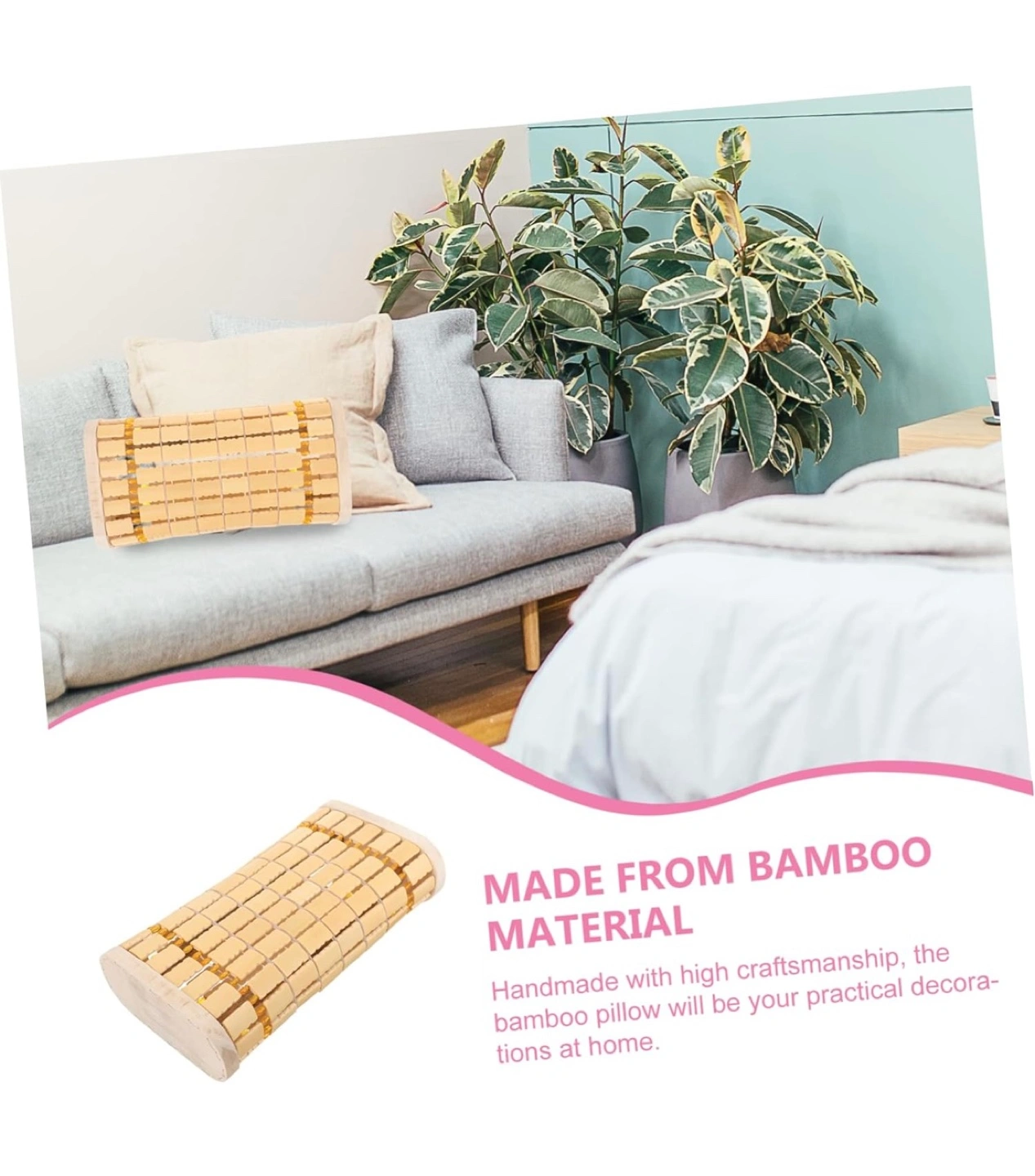 Relaxing bamboo pillow. Ergonomic design. Made from premium bamboo material. Durable and comfortable. Perfect for lumbar support.